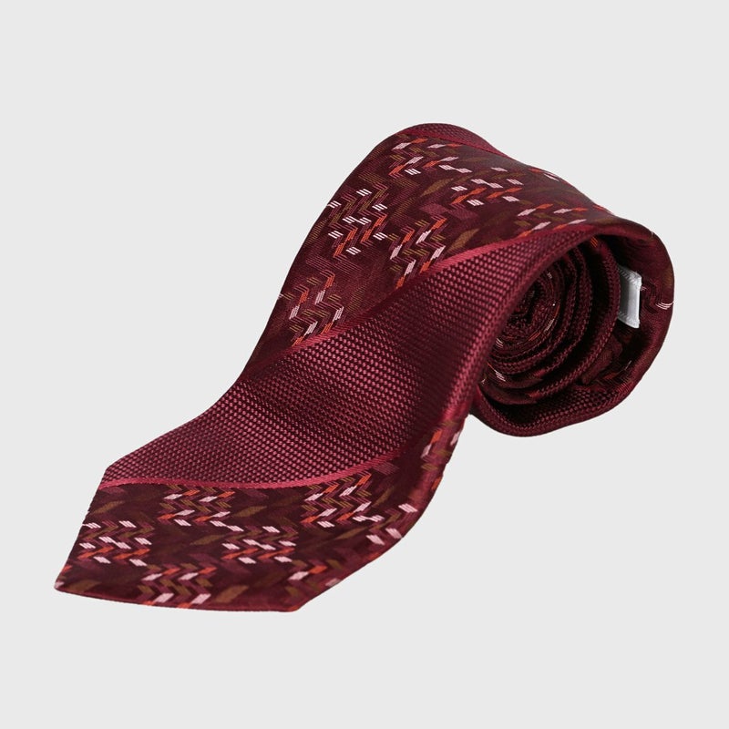 しつこくなりそうなジオメトリックも、柄を組み合わせることによりシックに締められる一本に。