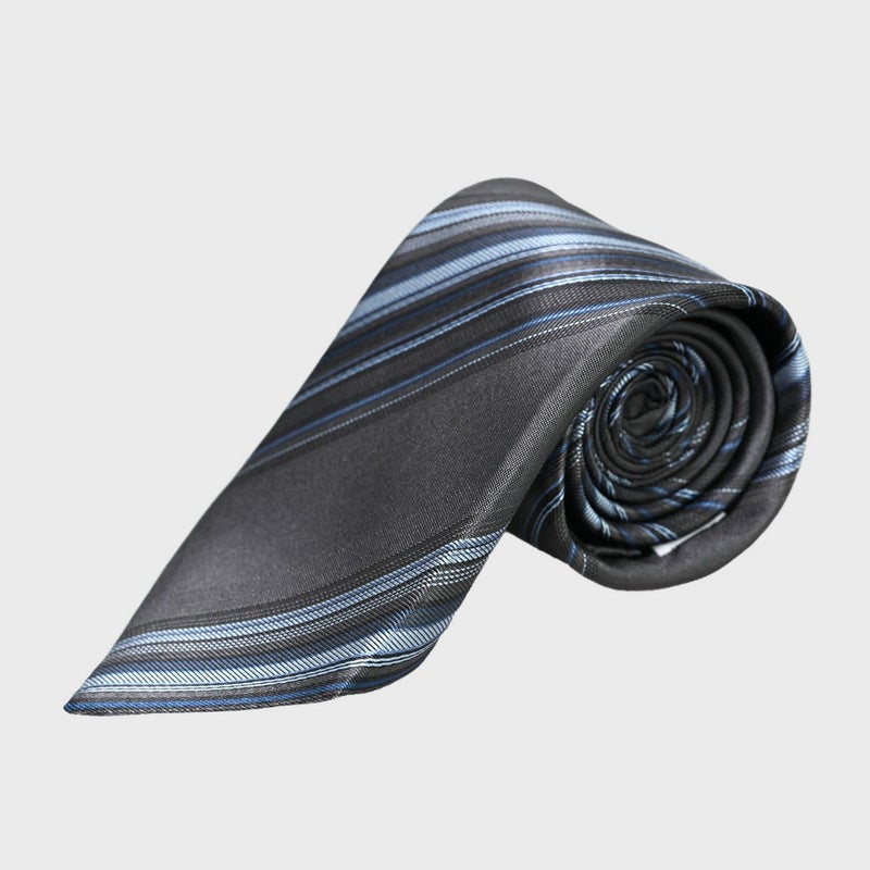 ストライプの持つ誠実な印象を持ちながらも、灰色と水色のひんやりした配色におしゃれさも感じられる、オススメの一本です。