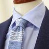 清涼感のある水色で、軽やかな印象のニットタイは、ビジネスシーンからカジュアルなスタイルにも合う、夏も使いやすいネクタイです。