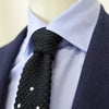 編み目もドットも可愛いネクタイですが、ノット部分にはドットを入れないことで、年齢問わず使いやすい上品な印象に。