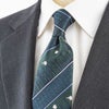 KINSHOKUネクタイ 白樺とシマエナガモチーフチェックストライプ・グリーン