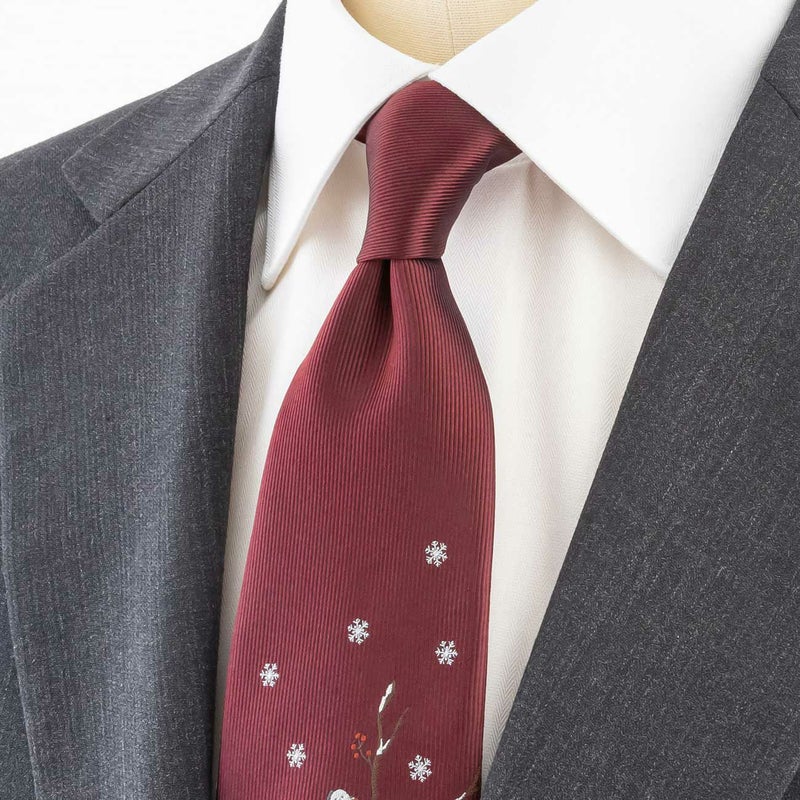 KINSHOKUネクタイ 白樺の森とシマエナガモチーフパネル・ワイン