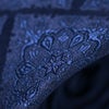 地の青と同系色の色で絶妙な濃淡を表現し、落ち着いた上品な印象を胸元にあたえるメダリオンタイ。