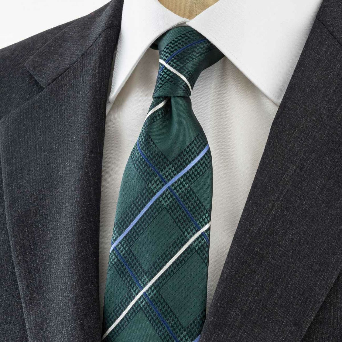 KINSHOKUネクタイ 純国産千鳥チェック・グリーン