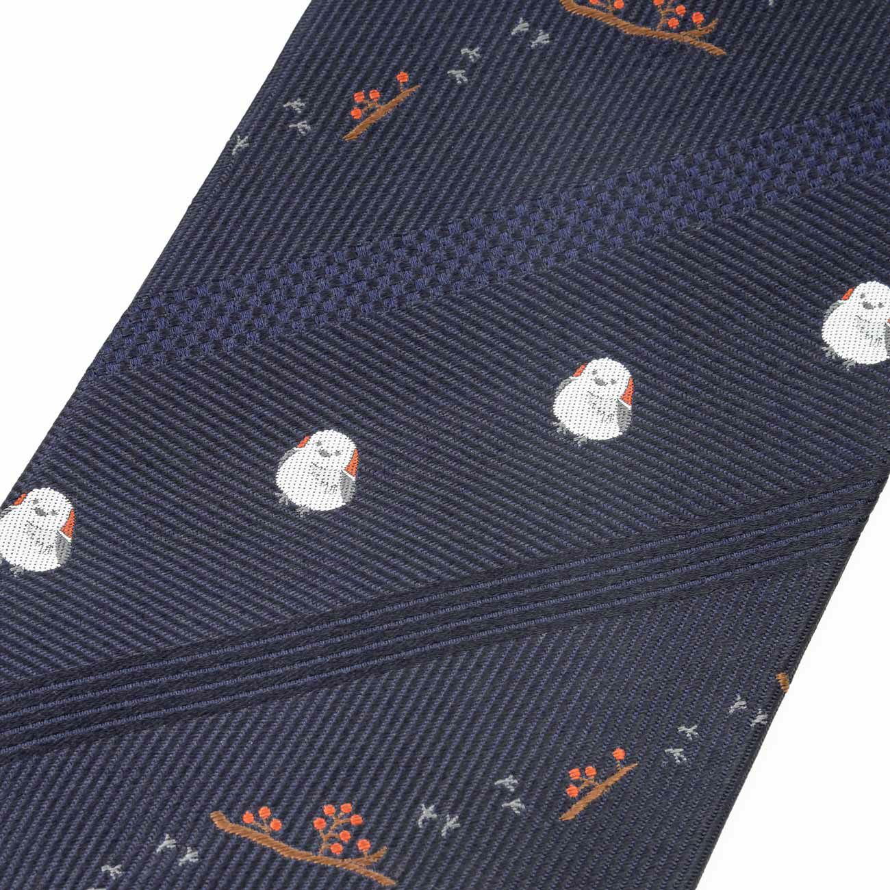 KINSHOKUネクタイ 白樺の森とシマエナガモチーフパネル・ネイビー