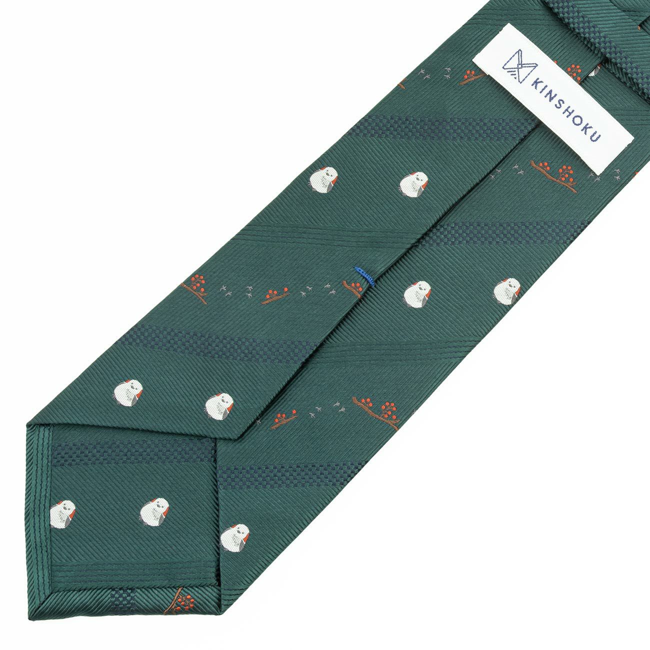 KINSHOKUネクタイ 白樺の森とシマエナガモチーフパネル・グリーン