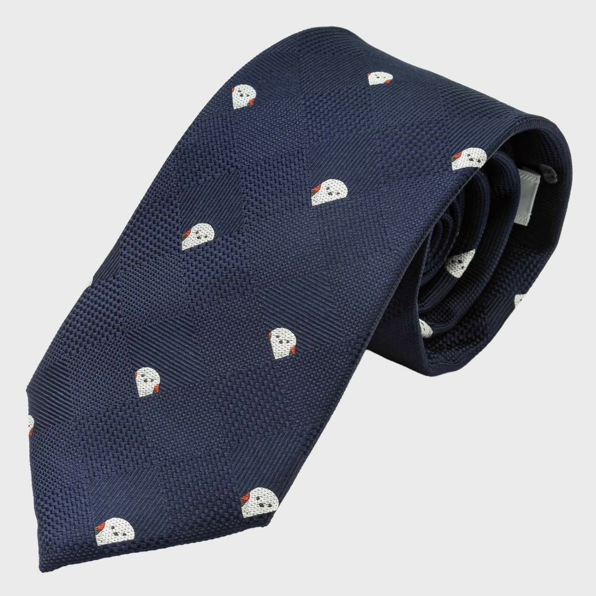 KINSHOKUネクタイ ほっこりシマエナガモチーフヘリンボン・ネイビー
