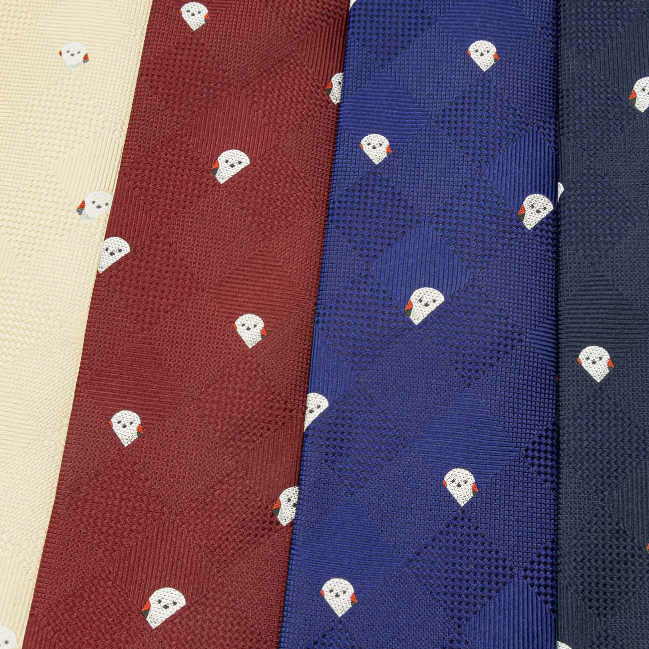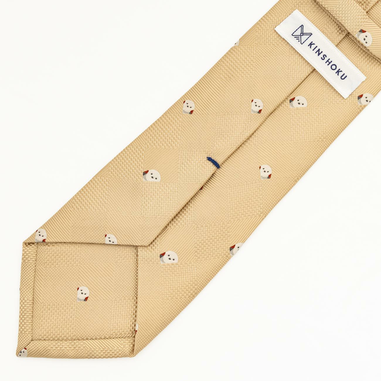 KINSHOKUネクタイ もふもふシマエナガモチーフ格子チェック・シャンパン