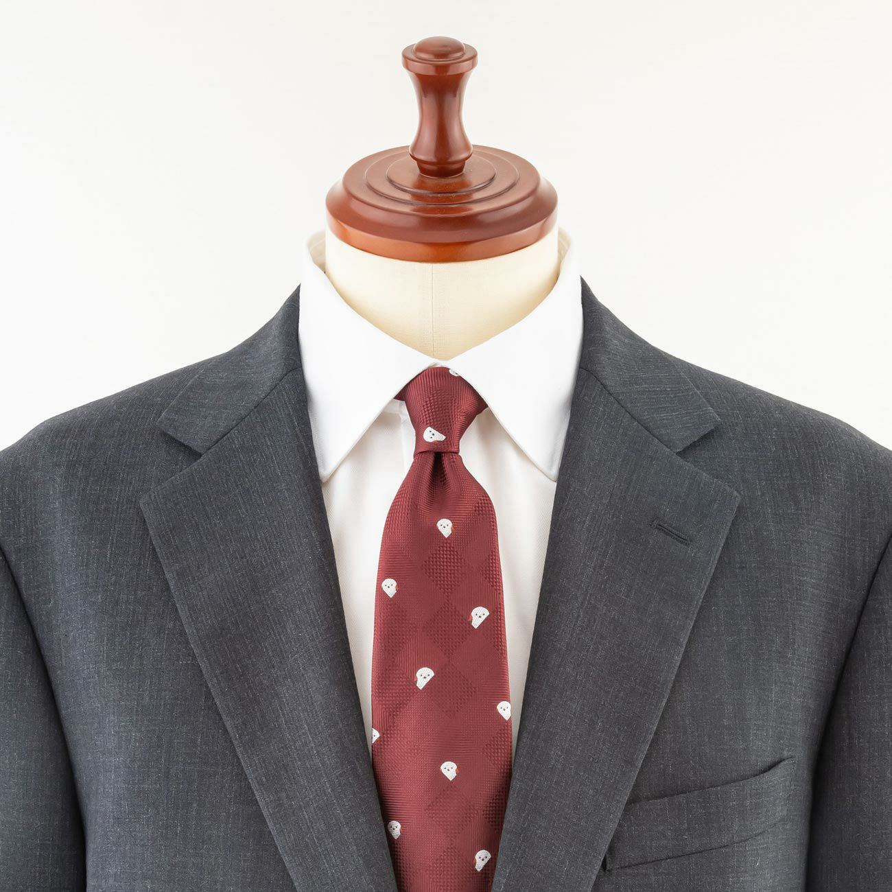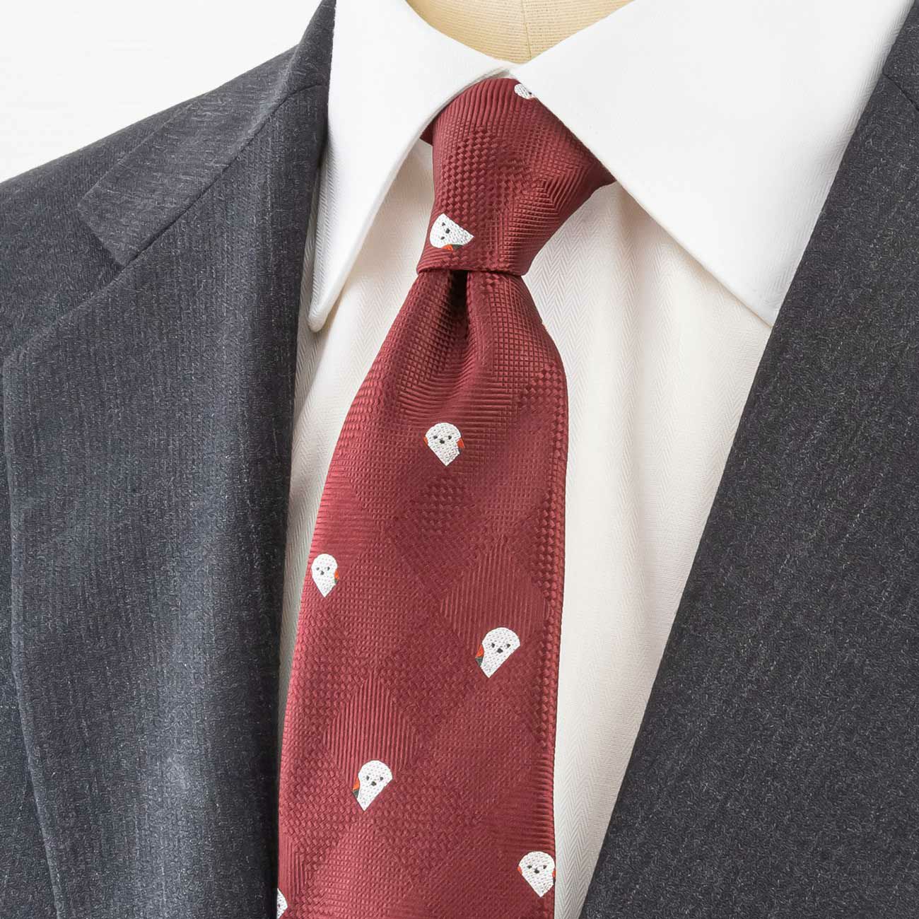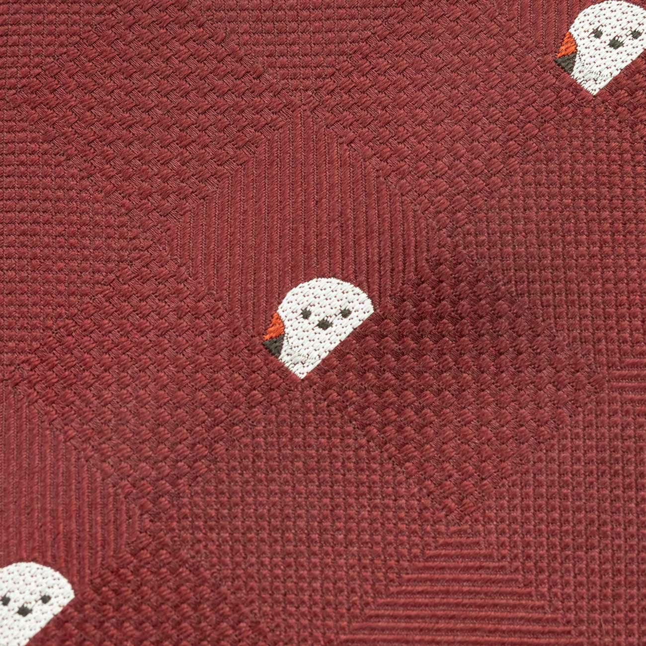 KINSHOKUネクタイ 白樺の森とシマエナガモチーフパネル・ワイン