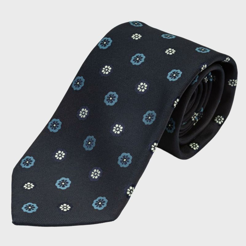 KINSHOKUネクタイ 西陣織レトロ花小紋・ネイビー