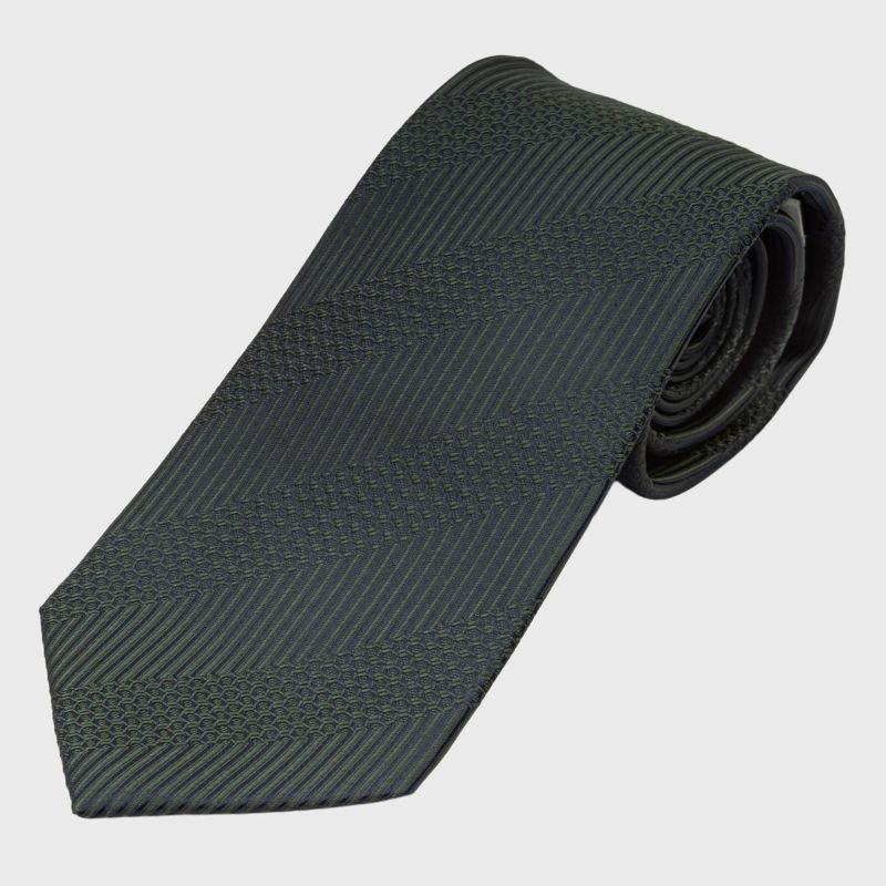 KINSHOKUネクタイ 西陣織ソリッド凹凸ストライプ・グリーン