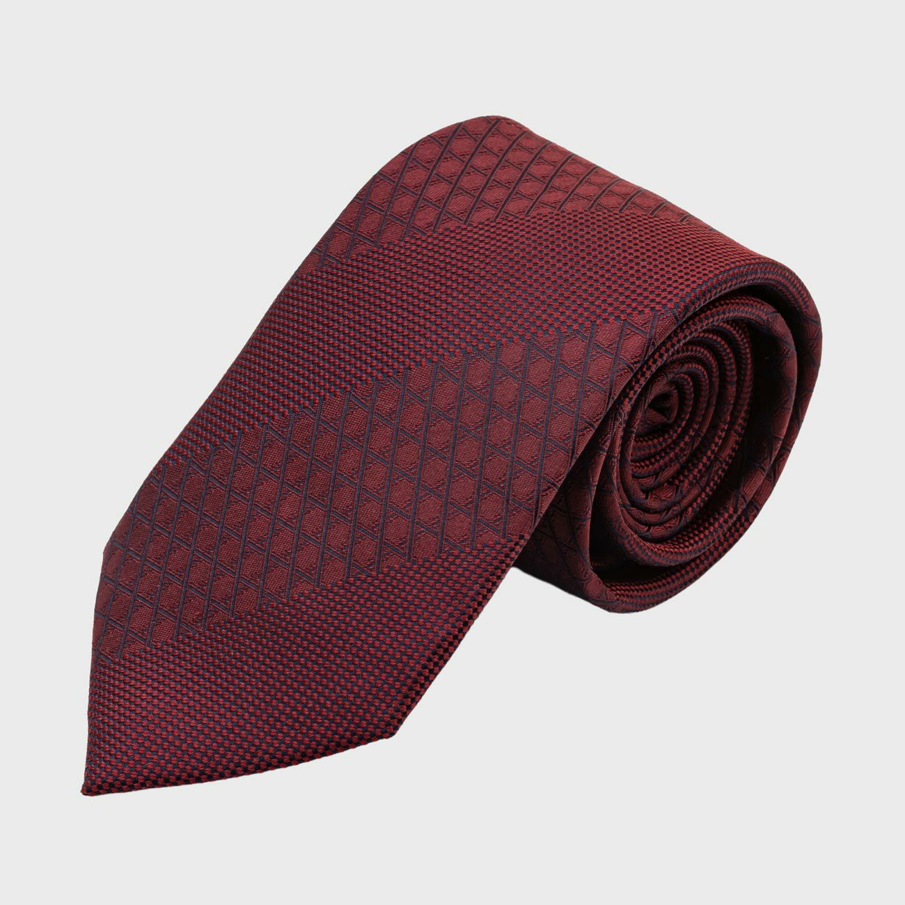 立体感がありながらも色で統一感を出しているため、どんなシチュエーションでも締めやすい、万能のネクタイです。