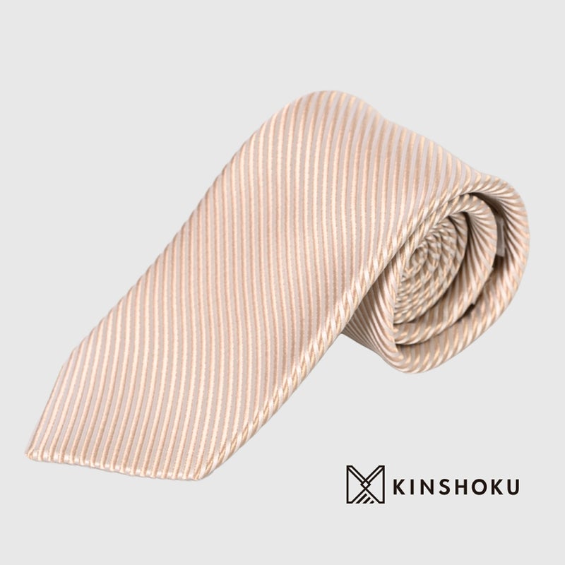 KINSHOKUネクタイ 桜染 フォーマルソリッドストライプ・グレージュ