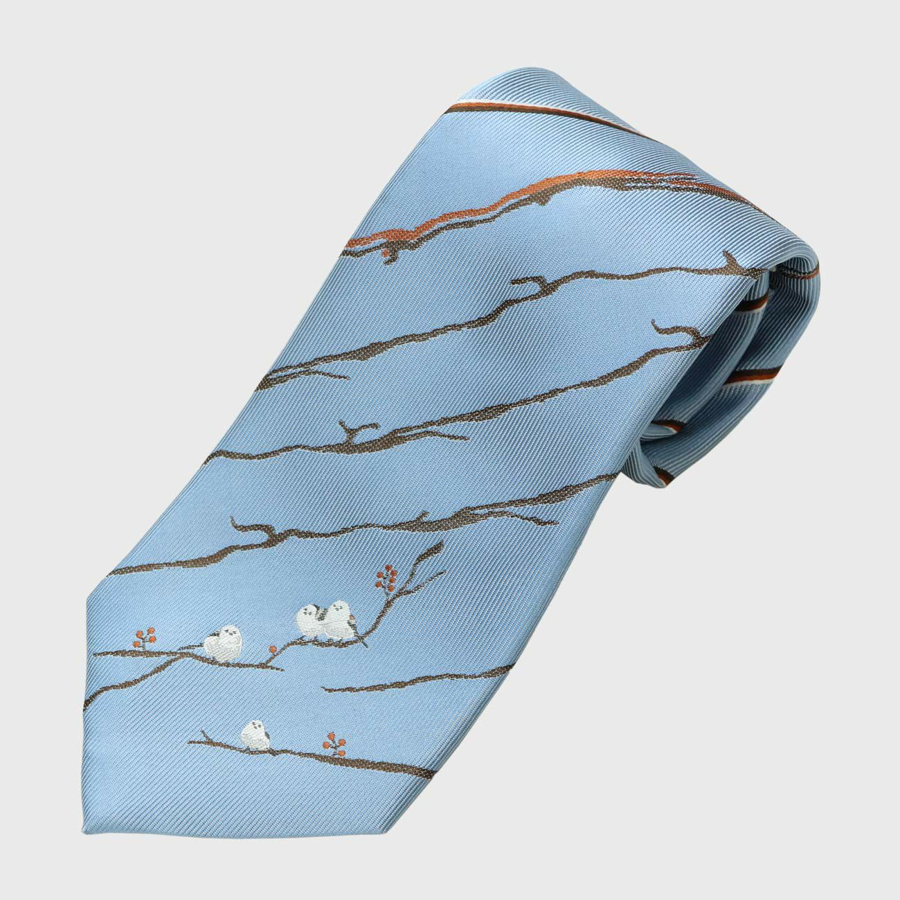 雪の妖精「シマエナガ」をモチーフにしたネクタイです。
