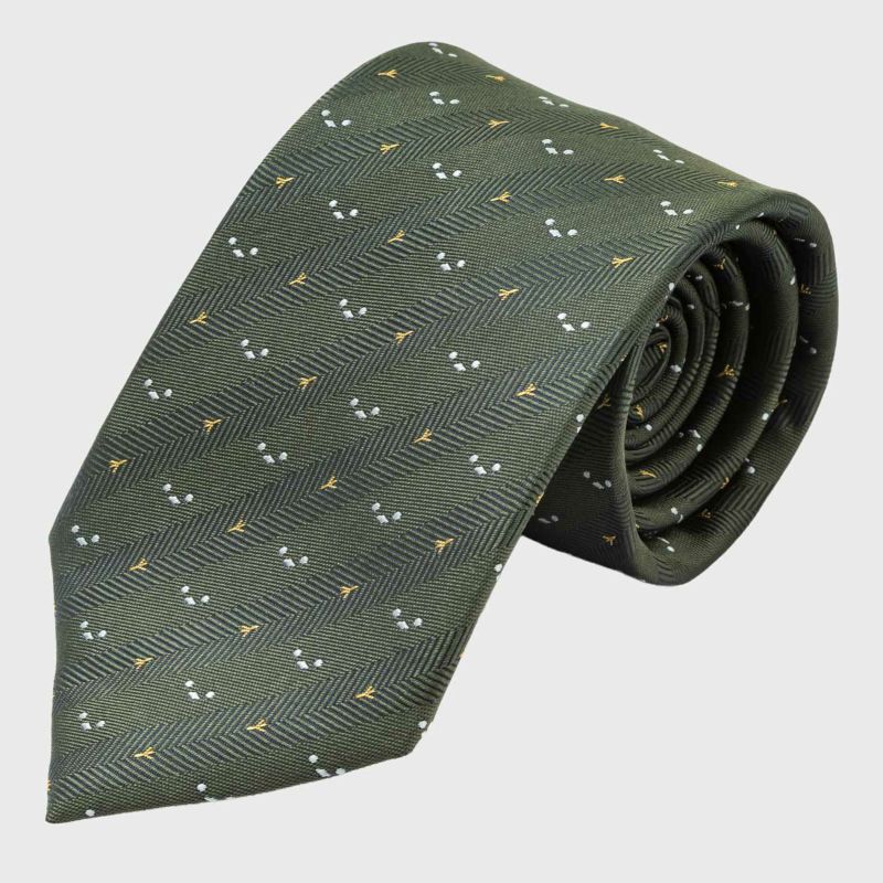 4. KINSHOKUネクタイ ほっこりシマエナガモチーフヘリンボン・カーキ