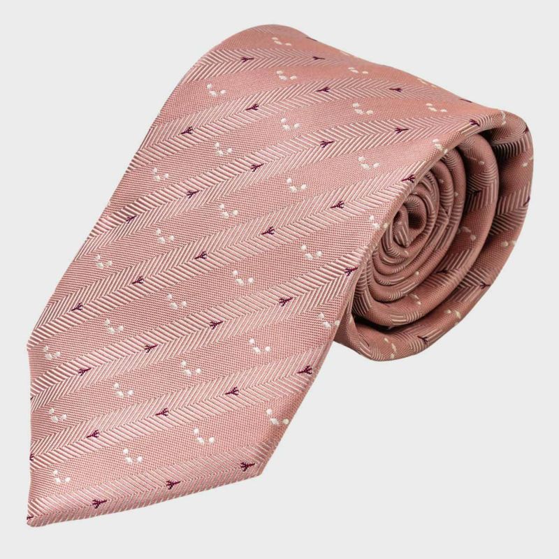 KINSHOKUネクタイ ほっこりシマエナガモチーフヘリンボン・ピンク