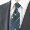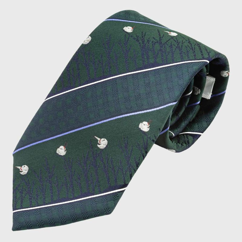 KINSHOKUネクタイ 白樺とシマエナガモチーフチェックストライプ・グリーン