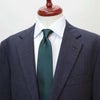 経糸にはネイビーを使用。深緑を支える濃紺が、濡れたようにしっとりとした質感を生み出します。どんなシチュエーションにも使うことができる、万能のネクタイです。
