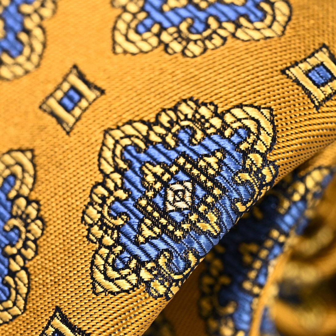ROYTOUCHネクタイ プリント風クラシック小紋・ゴールド/ライトブルー