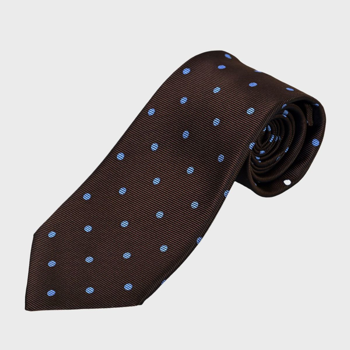 ROYTOUCHネクタイ ドット・ブラウン/ライトブルー