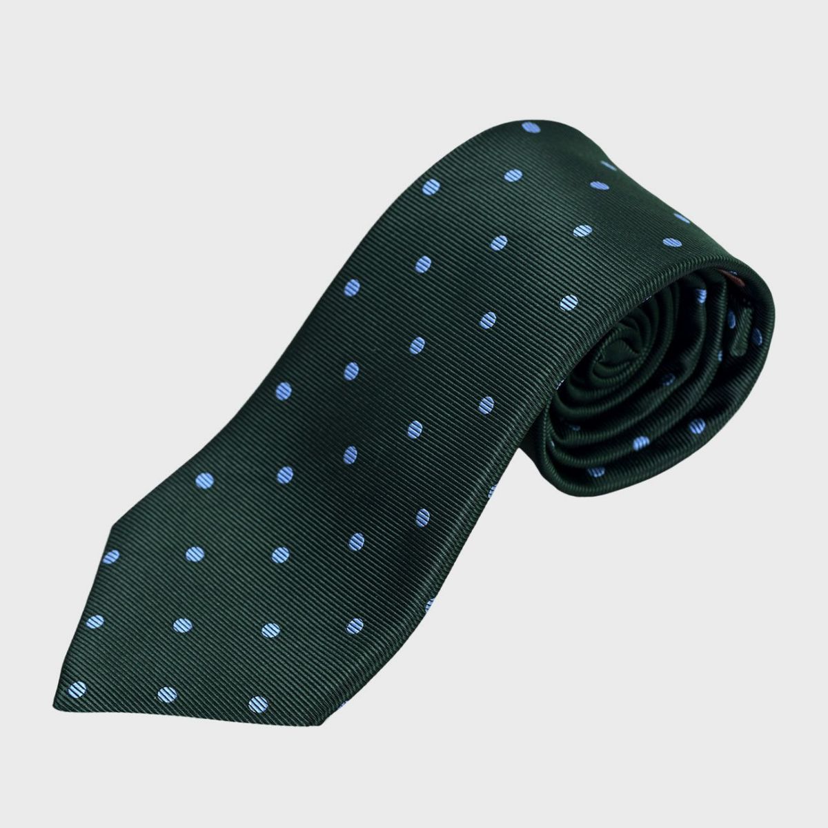 ROYTOUCHネクタイ ドット・グリーン/ライトブルー