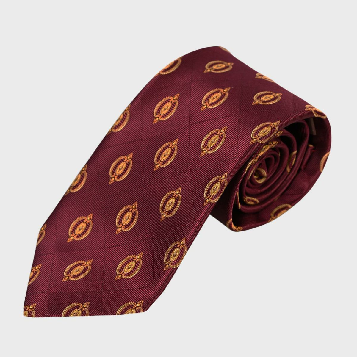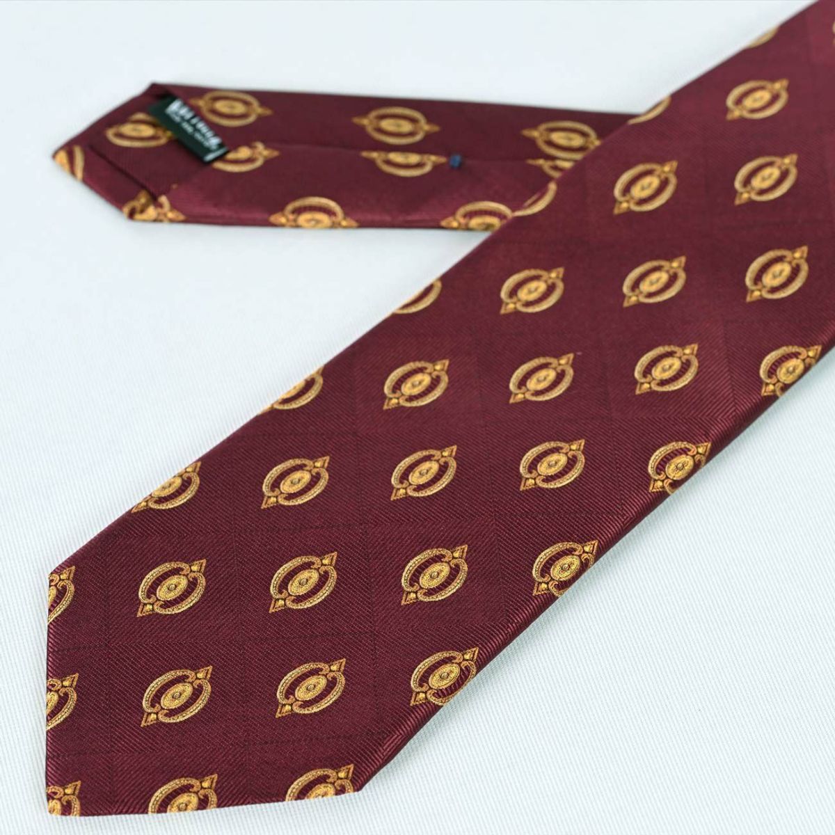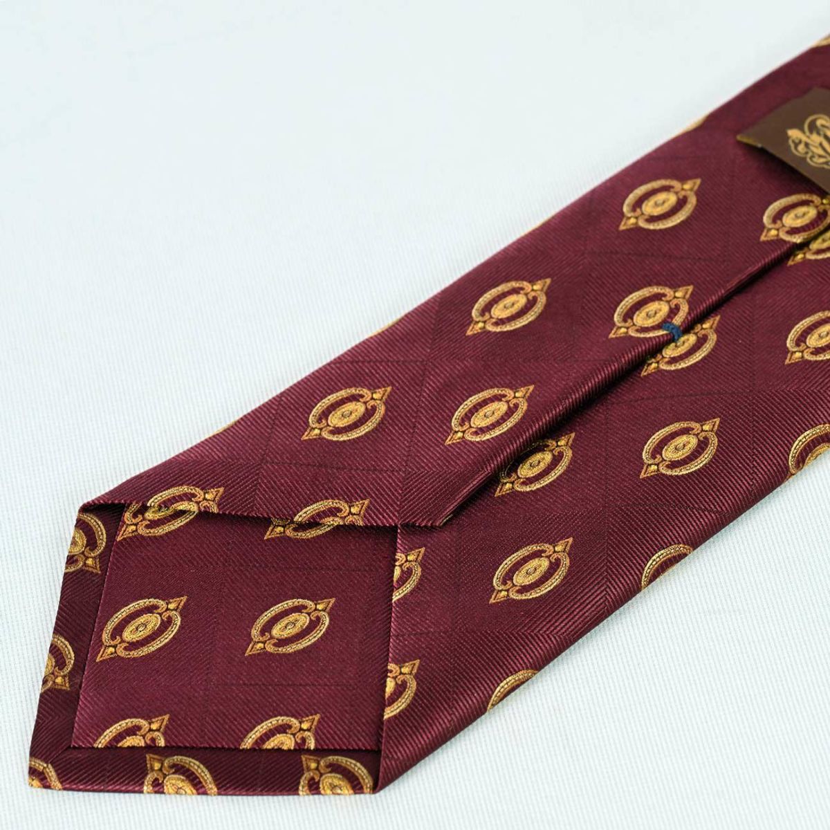 ROYTOUCHネクタイ 格子メダリオン・ワイン/ゴールド
