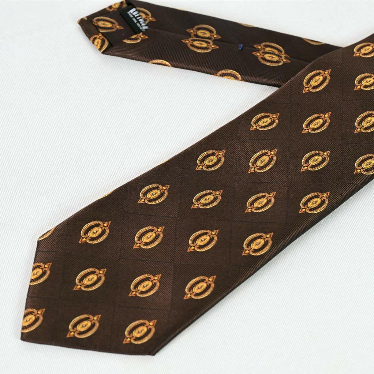 ROYTOUCHネクタイ 格子メダリオン・ブラウン/ゴールド