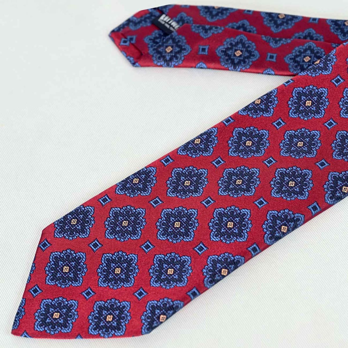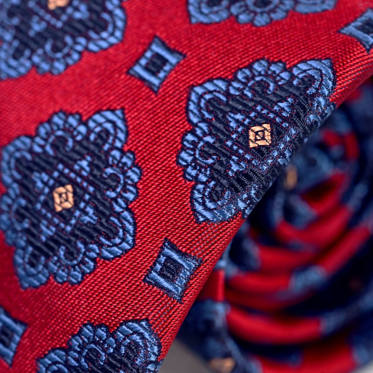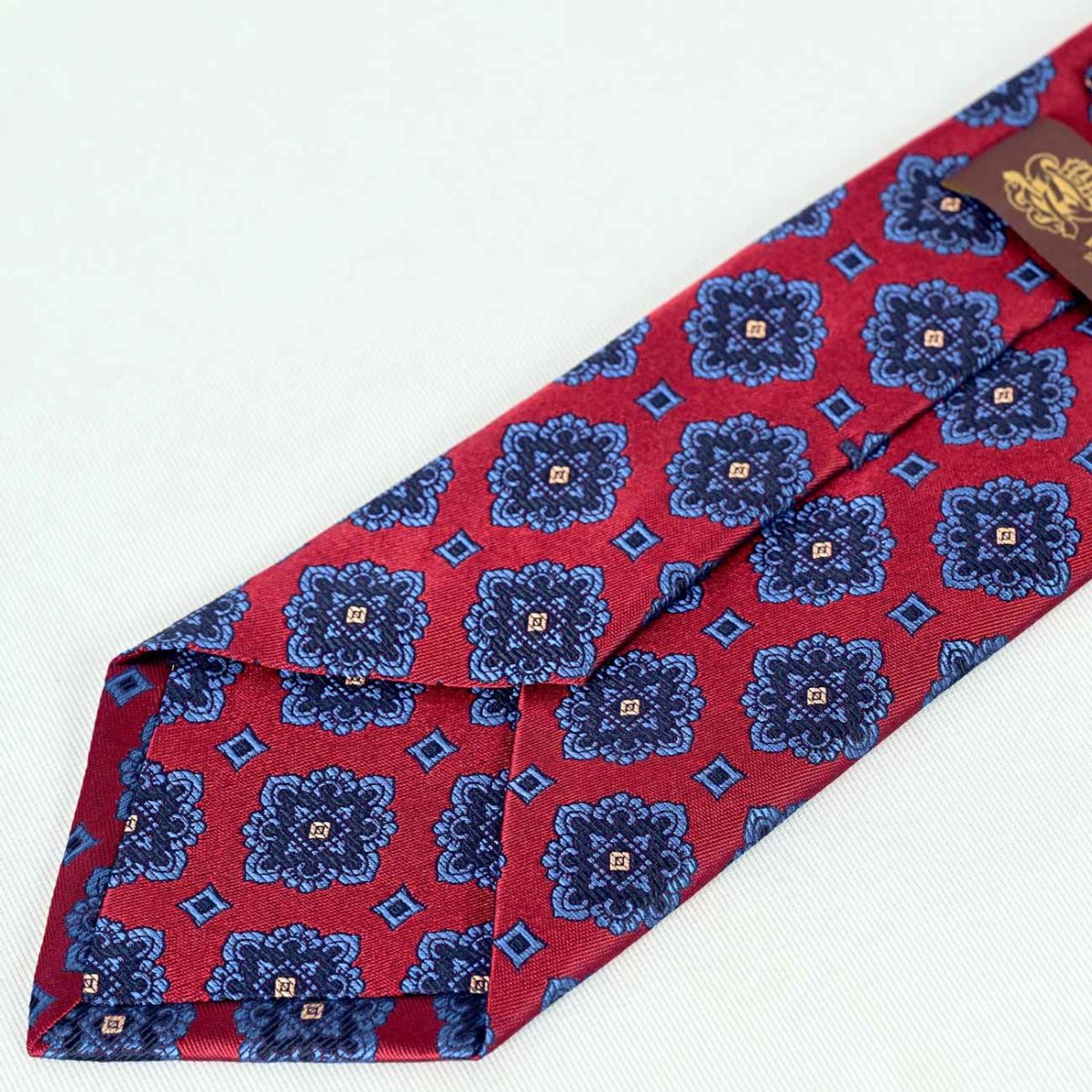 ROYTOUCHネクタイ プリント風クラシック小紋・ワイン/ライトブルー