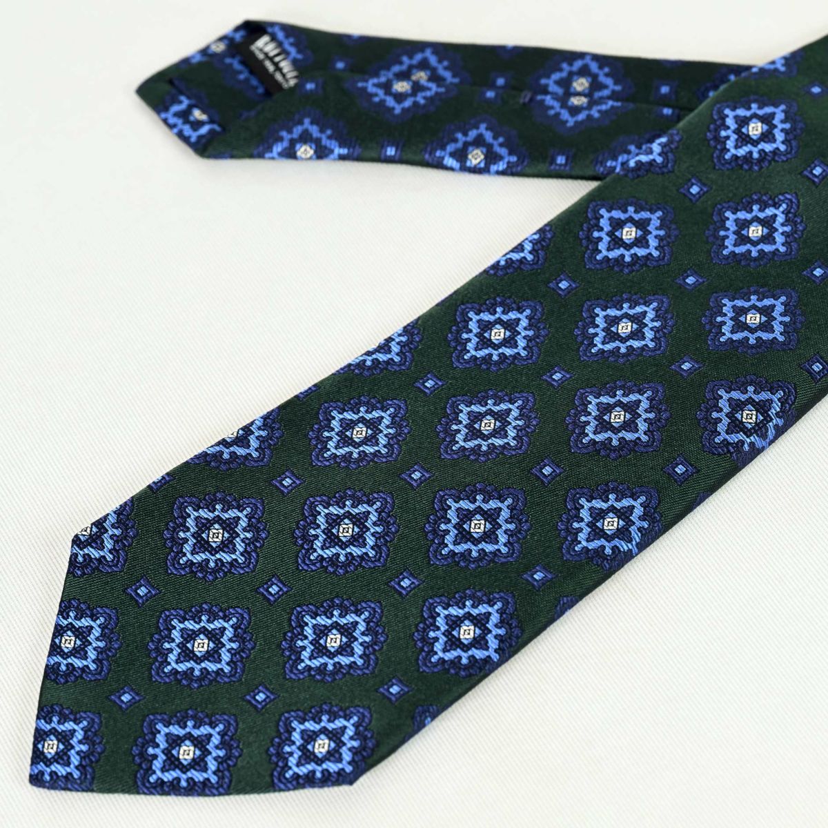ROYTOUCHネクタイ プリント風クラシック小紋・グリーン/ライトブルー