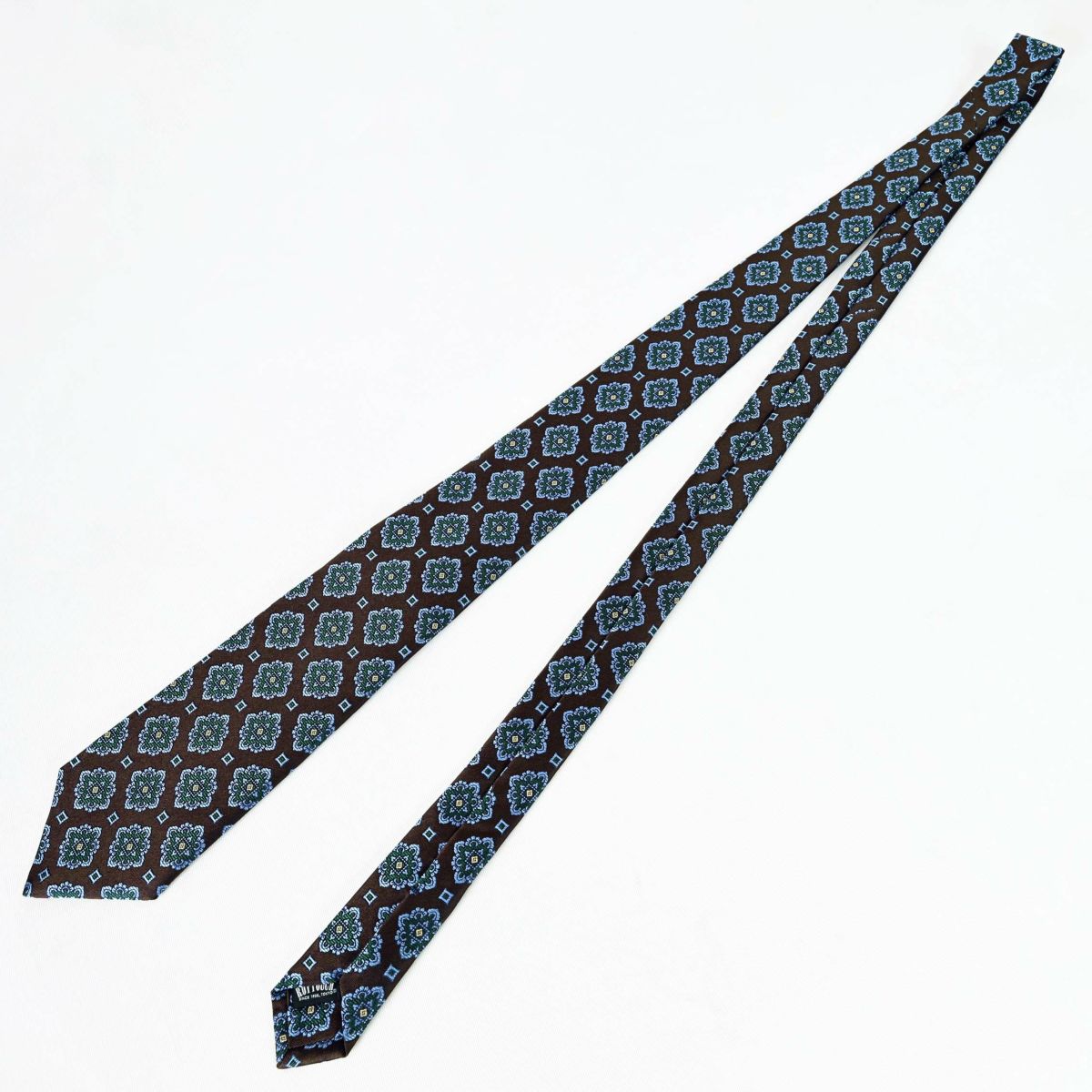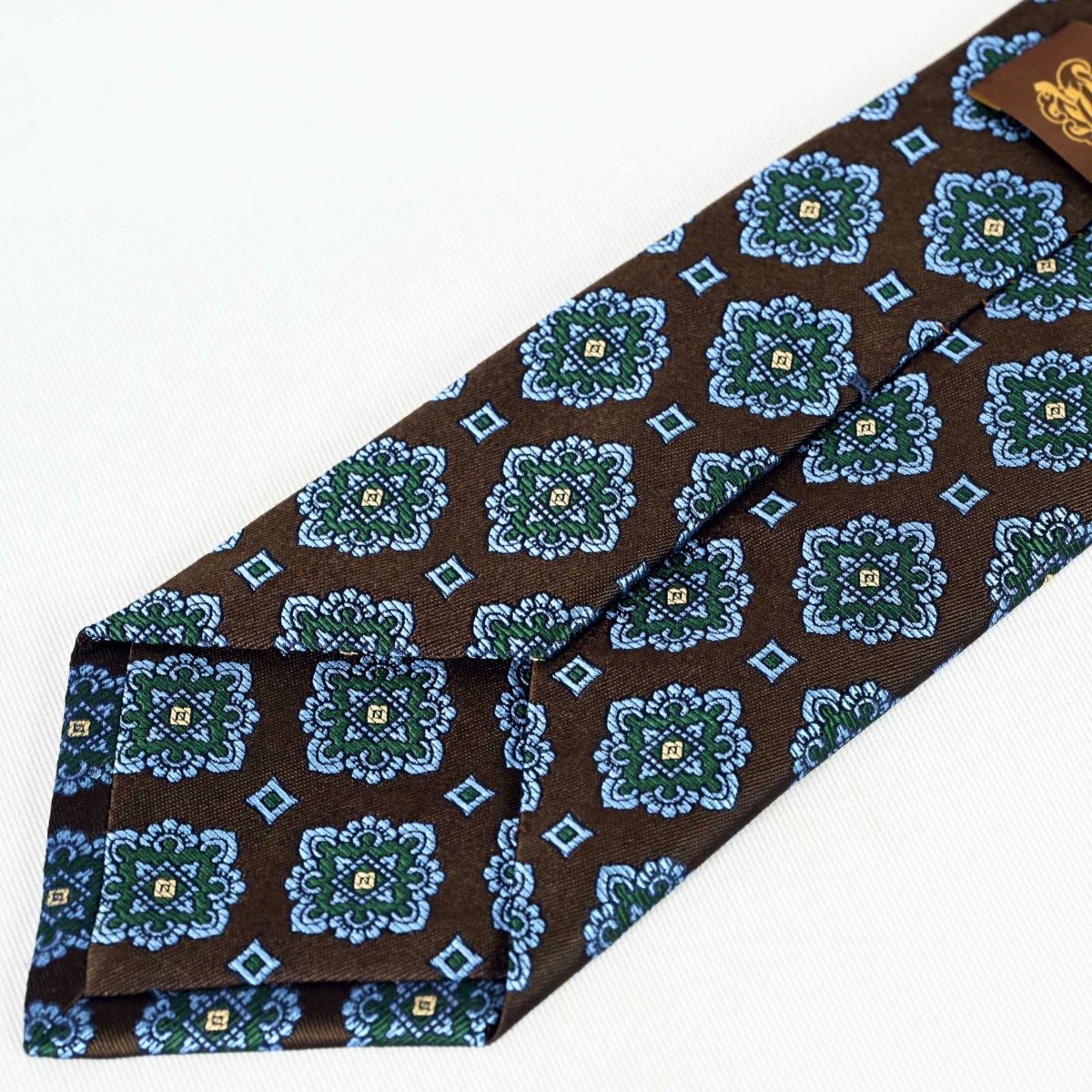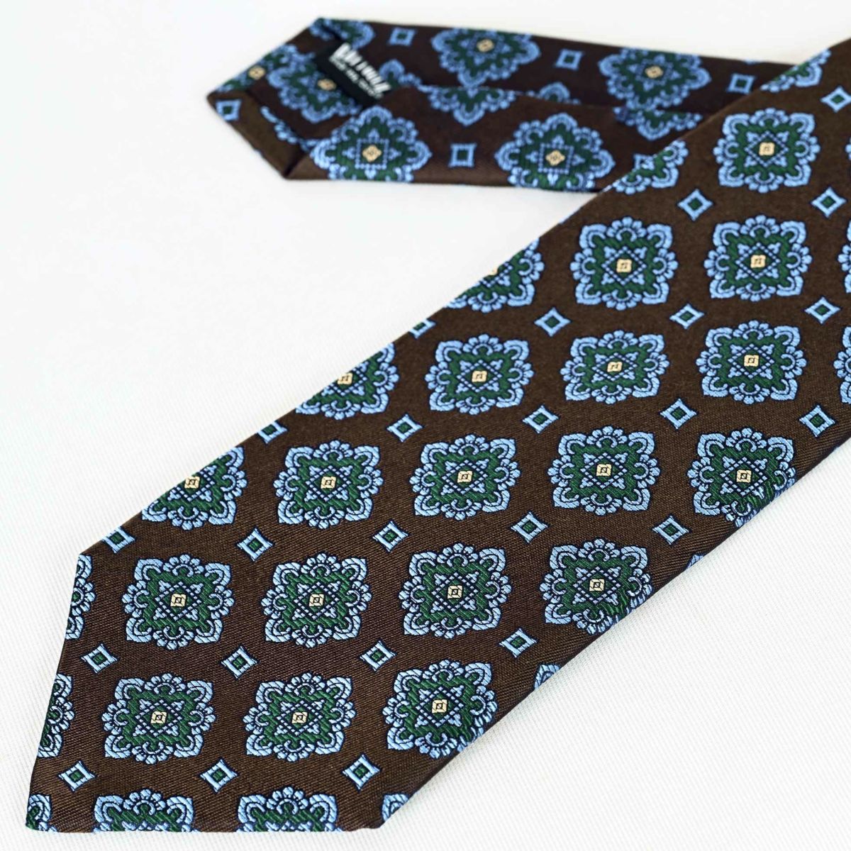 ROYTOUCHネクタイ プリント風クラシック小紋・ブラウン/ライトブルー