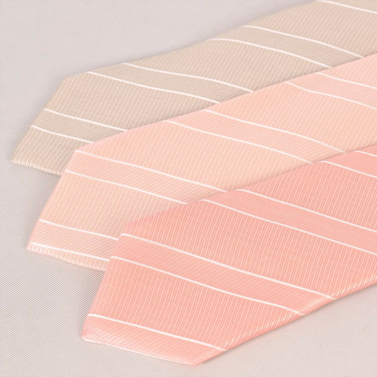KINSHOKUネクタイ 桜染 ソリッドストライプ・グレージュ