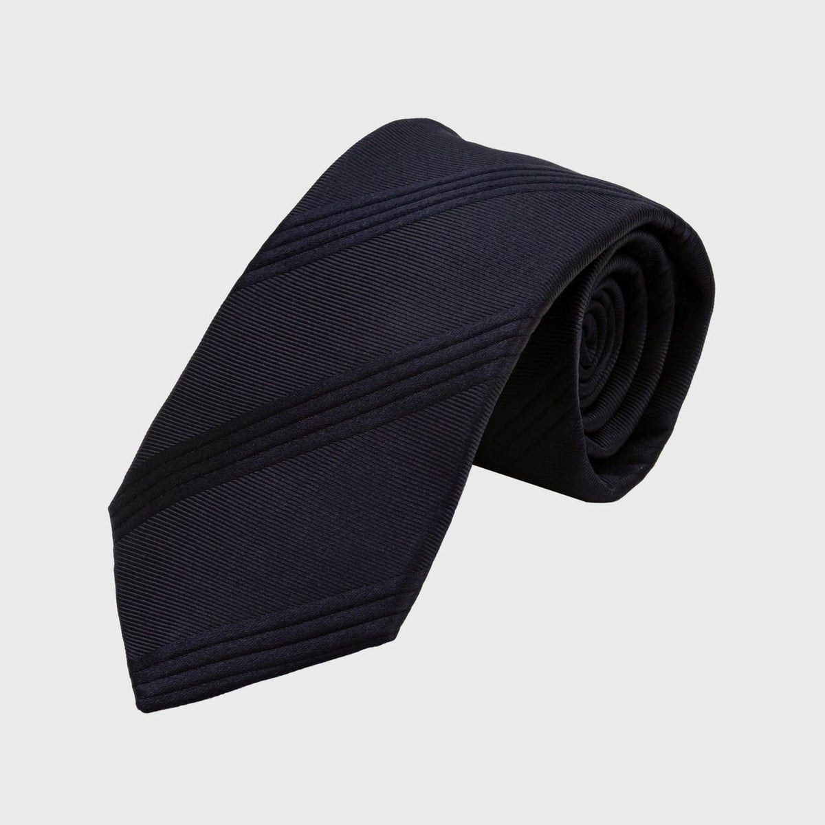 ROYTOUCHネクタイ ソリッド凹凸ストライプ・ネイビー
