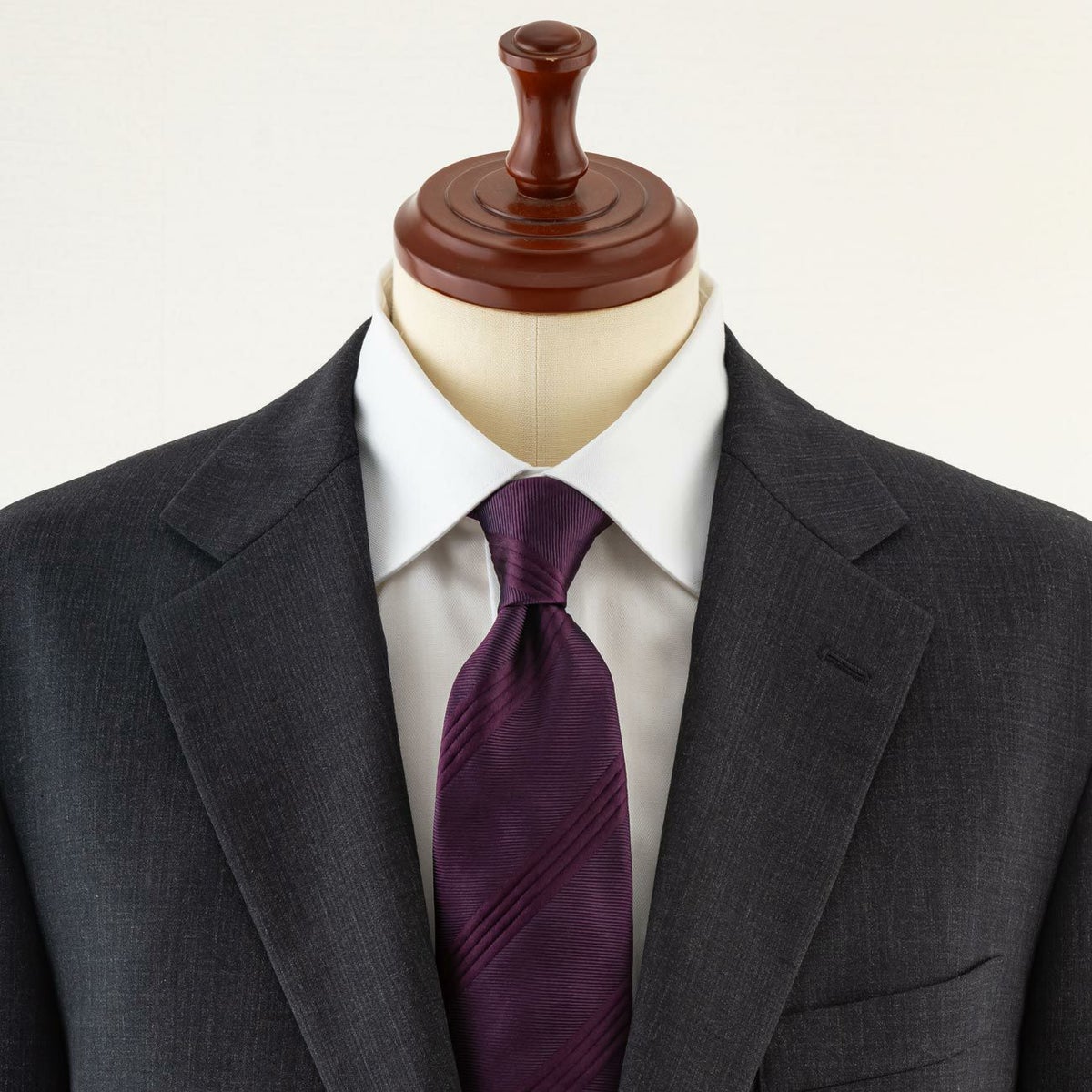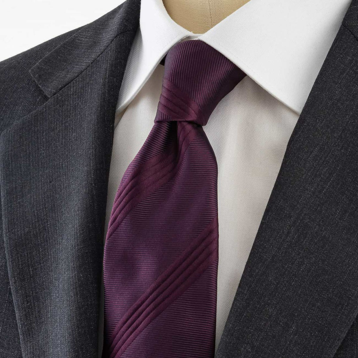 ROYTOUCHネクタイ ソリッド凹凸ストライプ・パープル