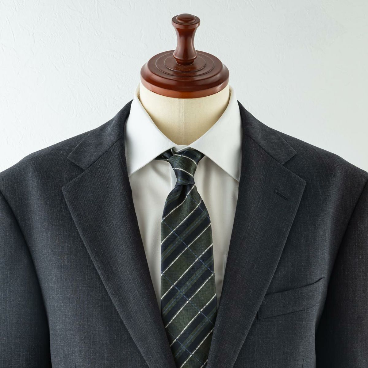 KINSHOKUネクタイ 西陣織ソリッド凹凸ストライプ・グリーン