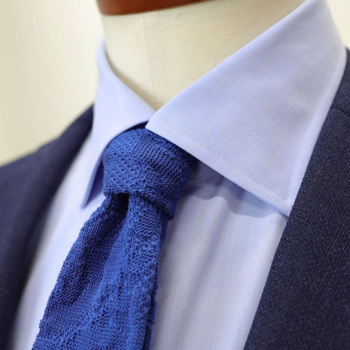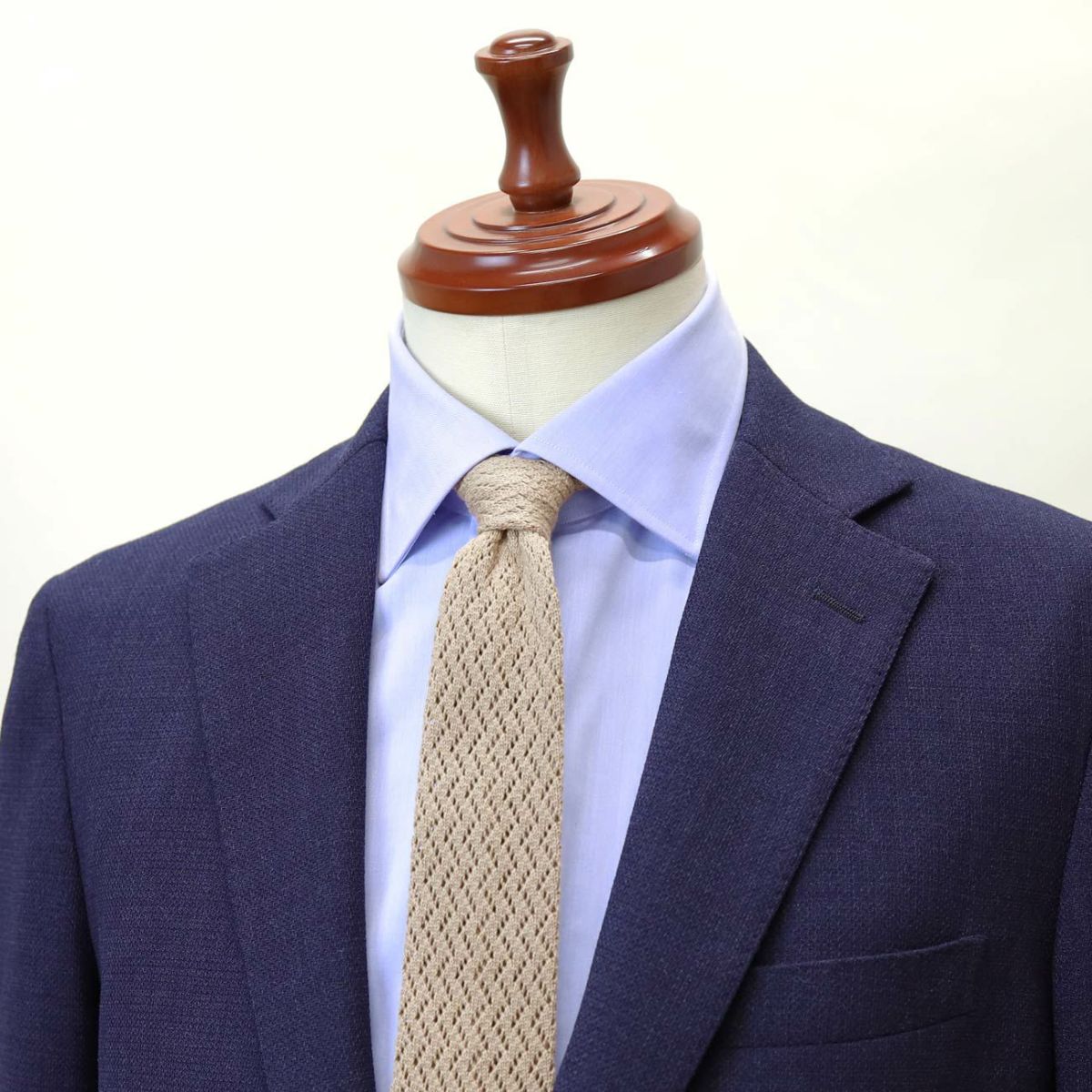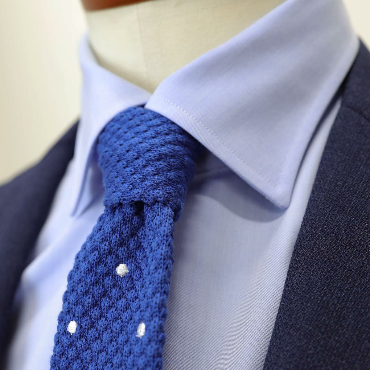 KINSHOKUネクタイ 海島綿 Sea Island Cotton ニットタイ ドット・ブルー