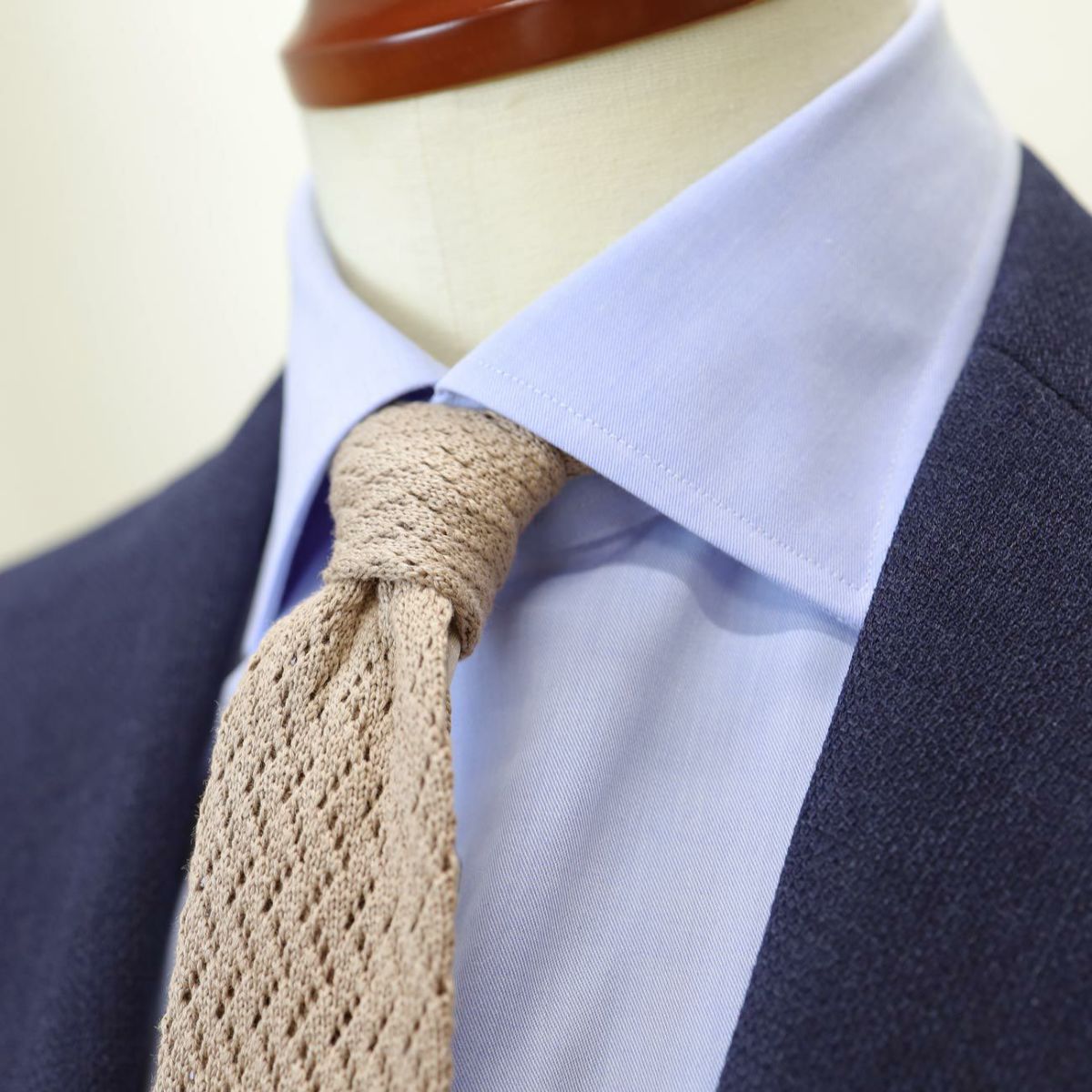 KINSHOKUネクタイ 海島綿 Sea Island Cotton ニットタイ ヘリンボン・ベージュ