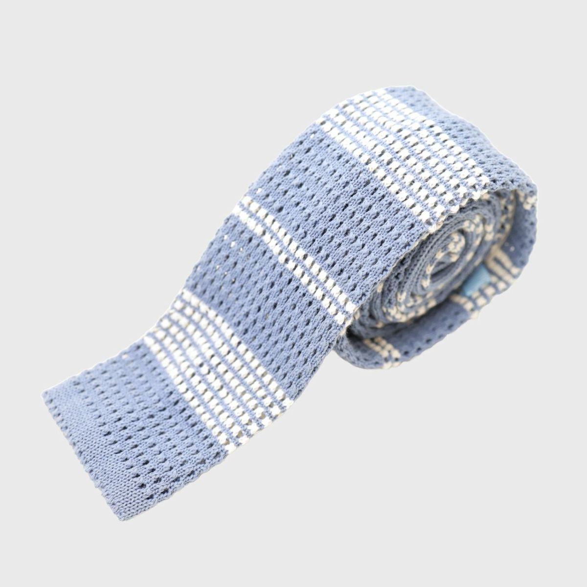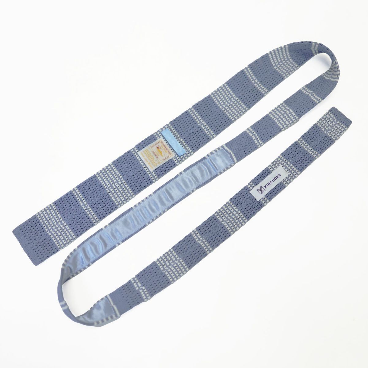 KINSHOKUネクタイ 海島綿 Sea Island Cotton ニットタイ ボーダー・ライトブルー