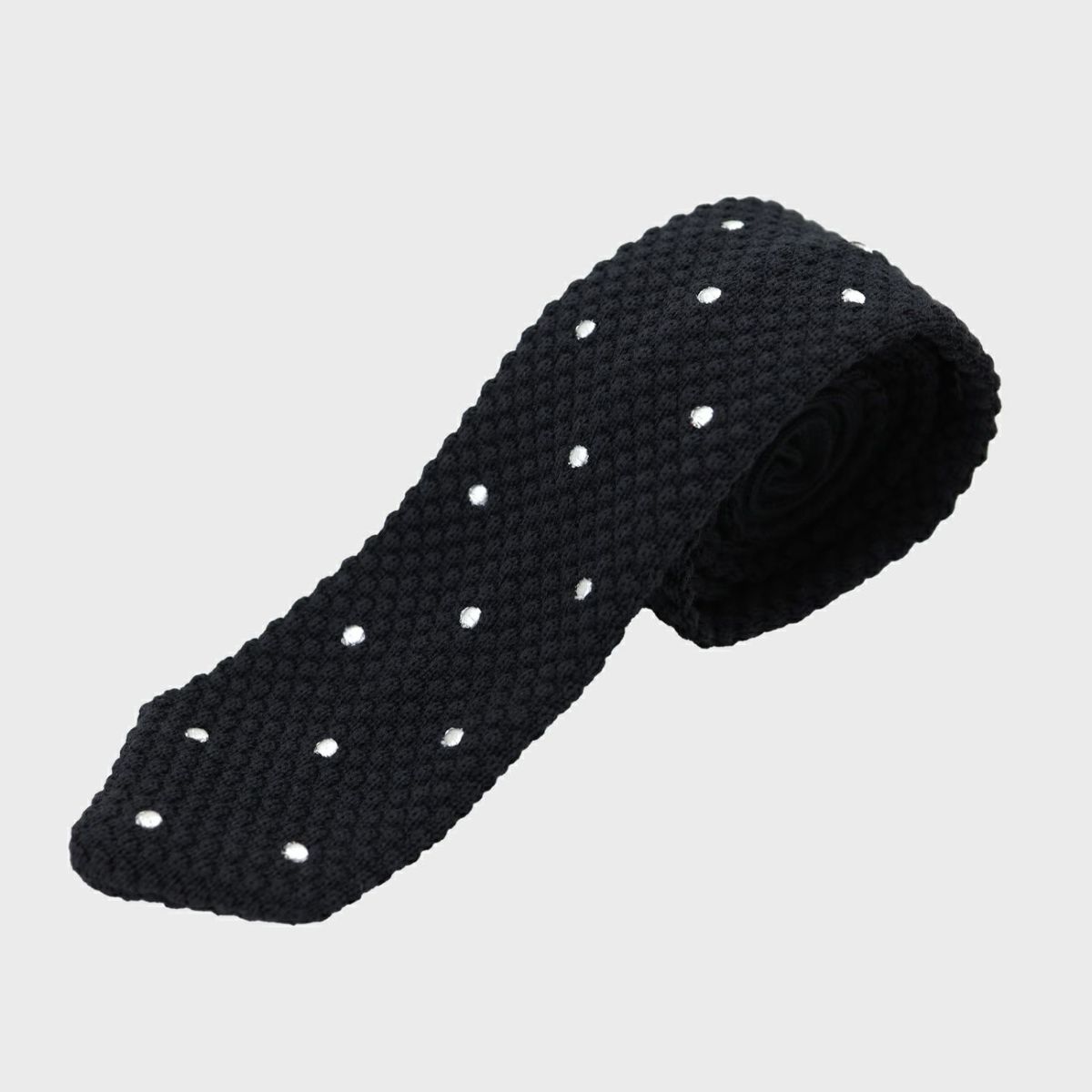 KINSHOKUネクタイ 海島綿 Sea Island Cotton ニットタイ ドット・ブラック