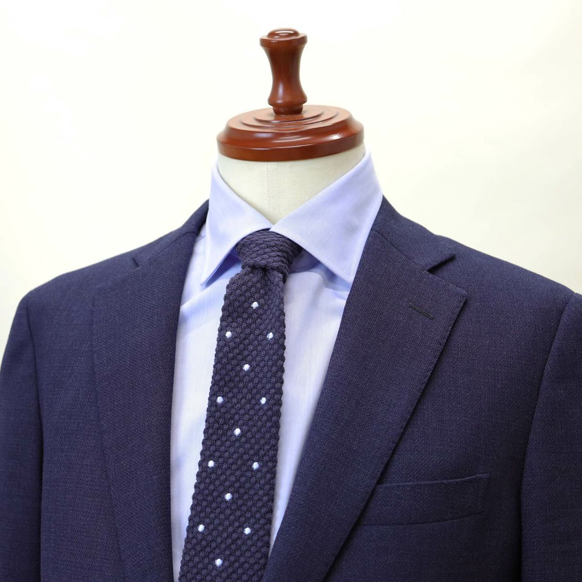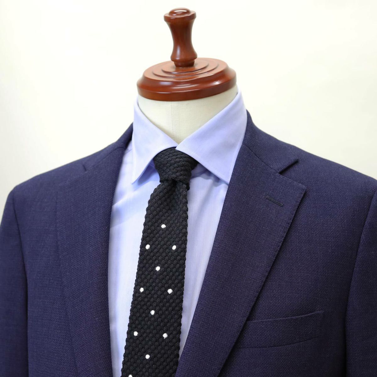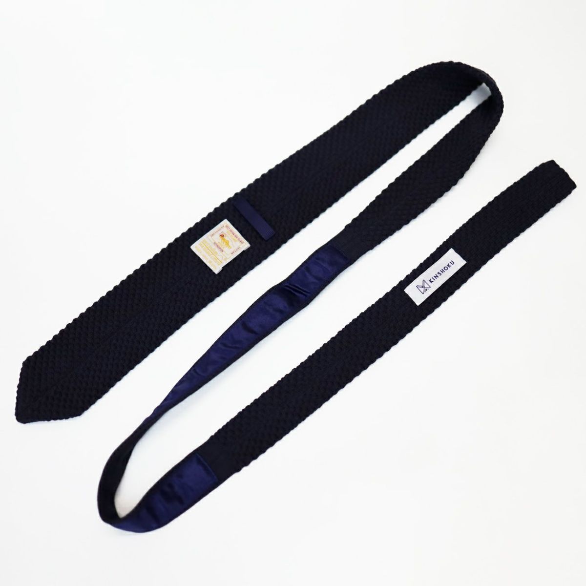 KINSHOKUネクタイ 海島綿 Sea Island Cotton ニットタイ ドット・ネイビー
