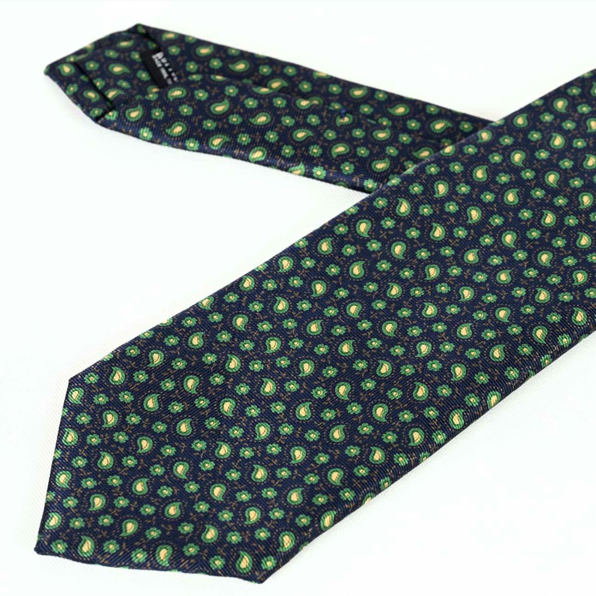 ROYTOUCHネクタイ プリントペイズリー・エメブルー