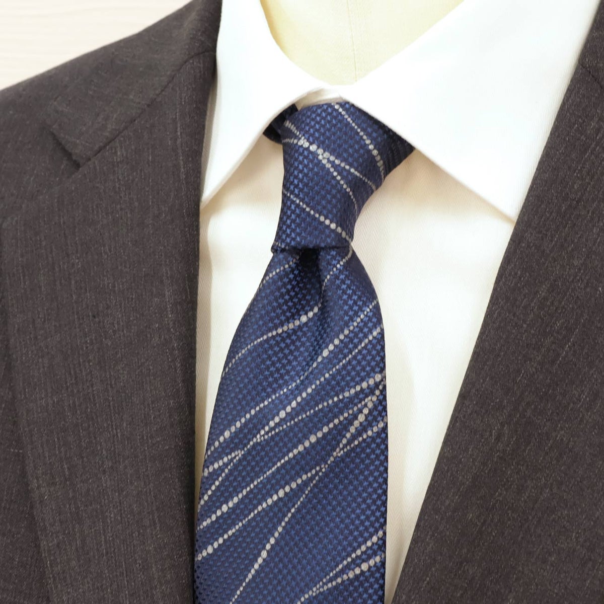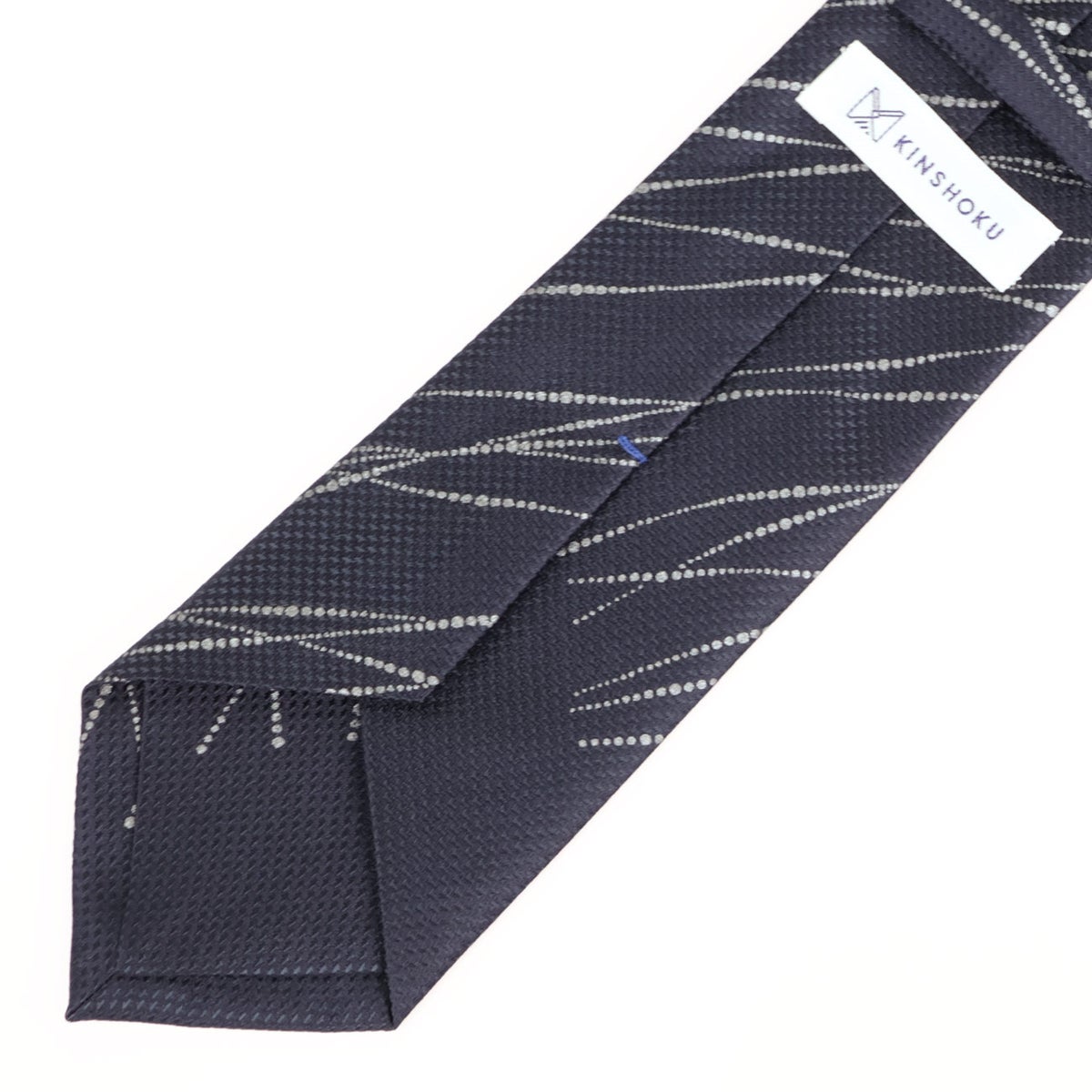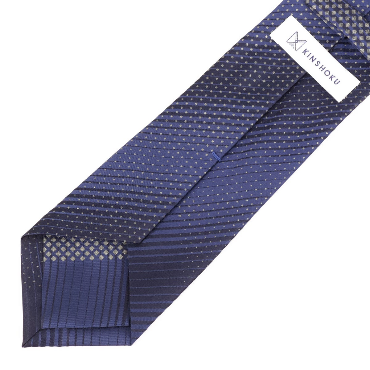 KINSHOKUネクタイ 京友禅ジャガードシャドーストライプドット・ネイビー