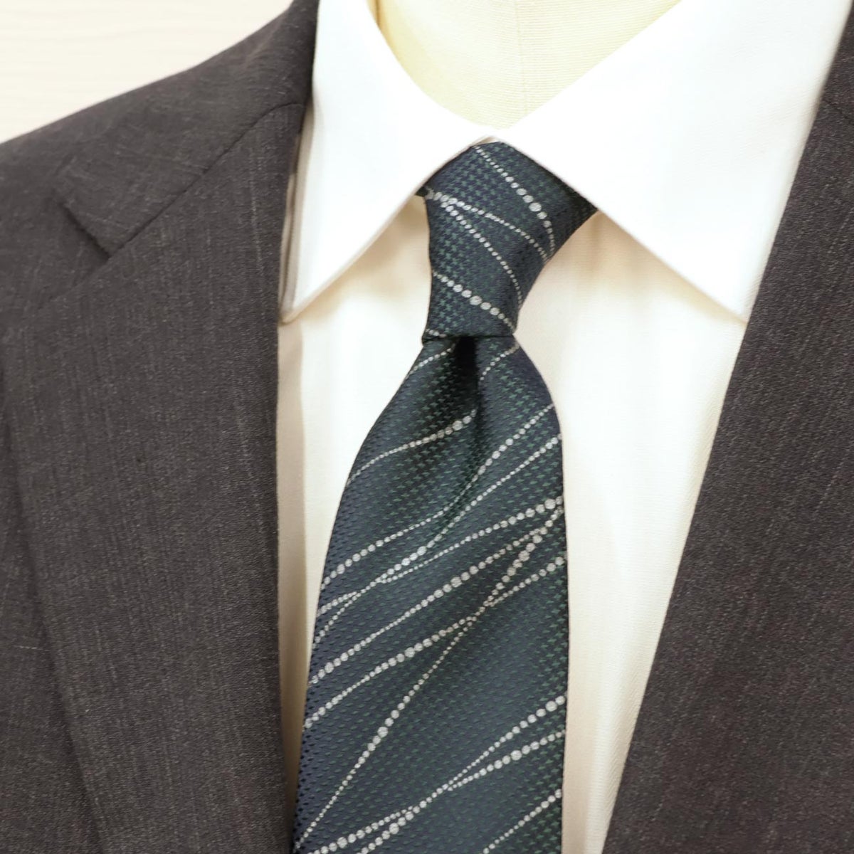 KINSHOKUネクタイ 京友禅ジャガードシャドーストライプドット・グリーン