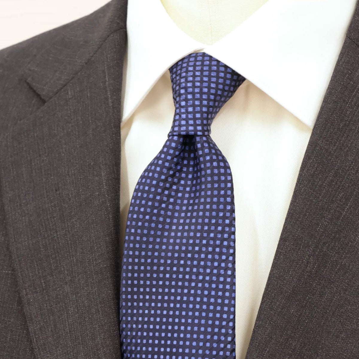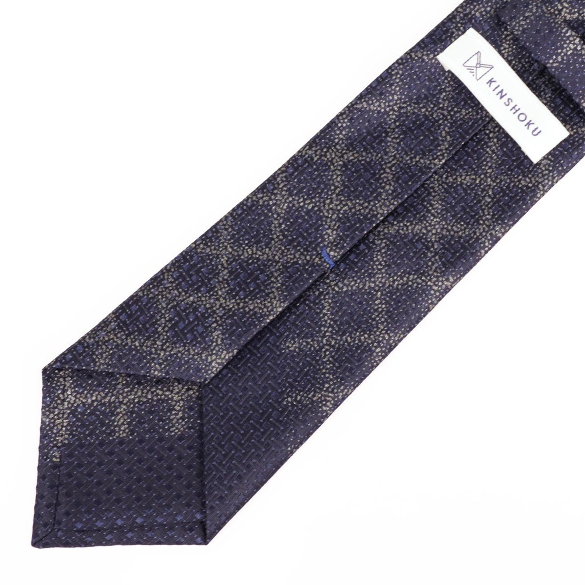 KINSHOKUネクタイ 京友禅ジャガードシャドー小紋チェック・ネイビー
