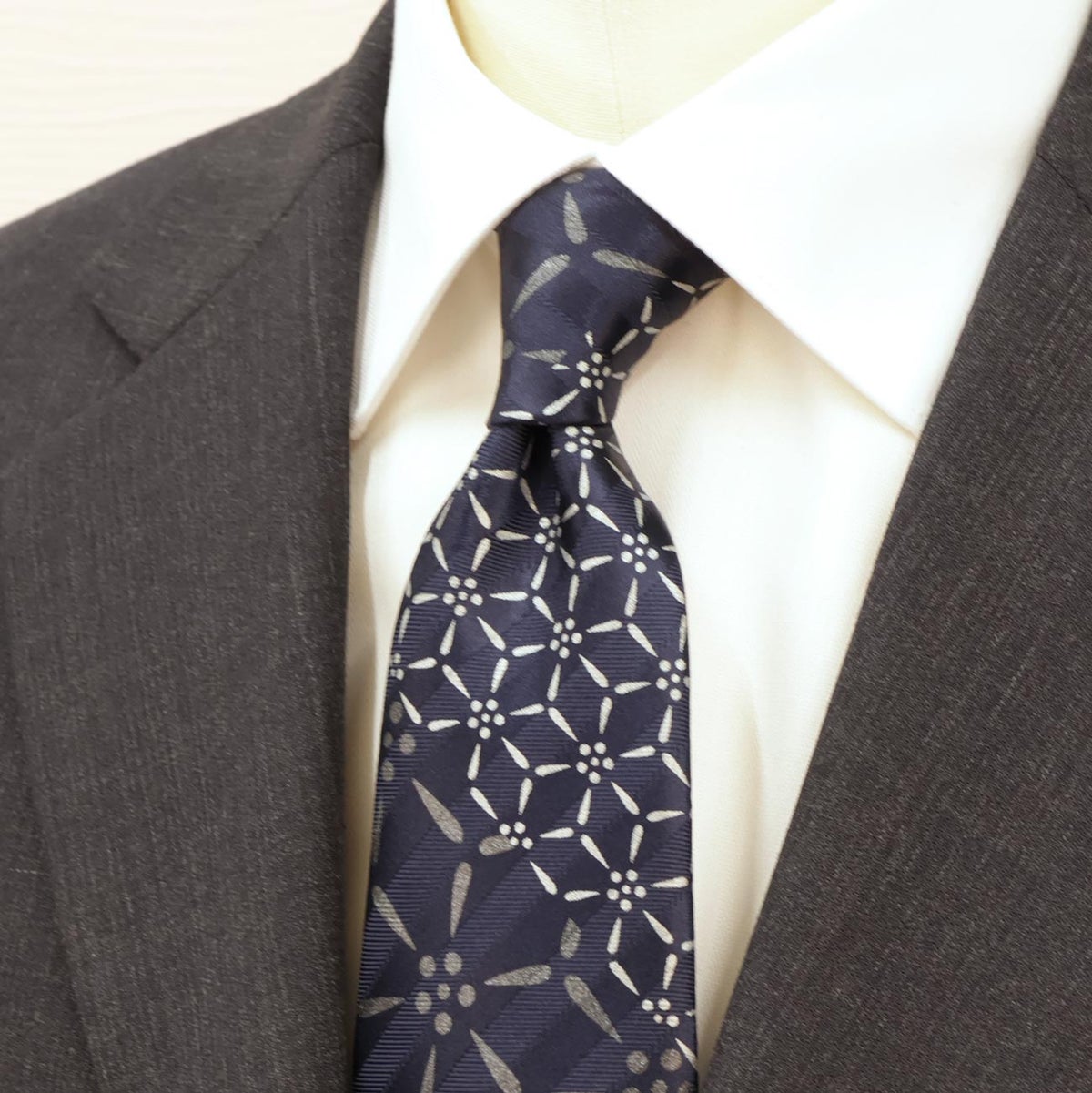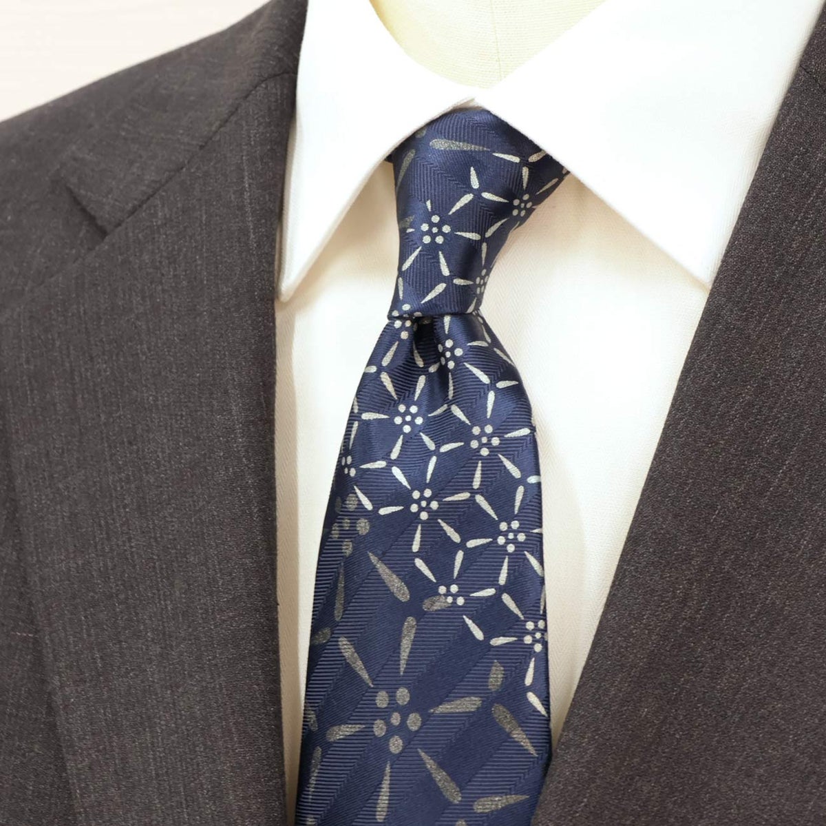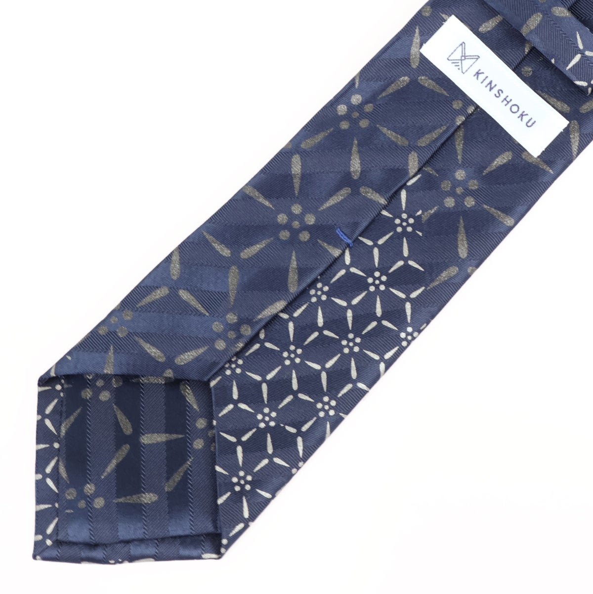 KINSHOKUネクタイ 京友禅ジャガードシャドー千鳥ジオメトリック・ネイビー