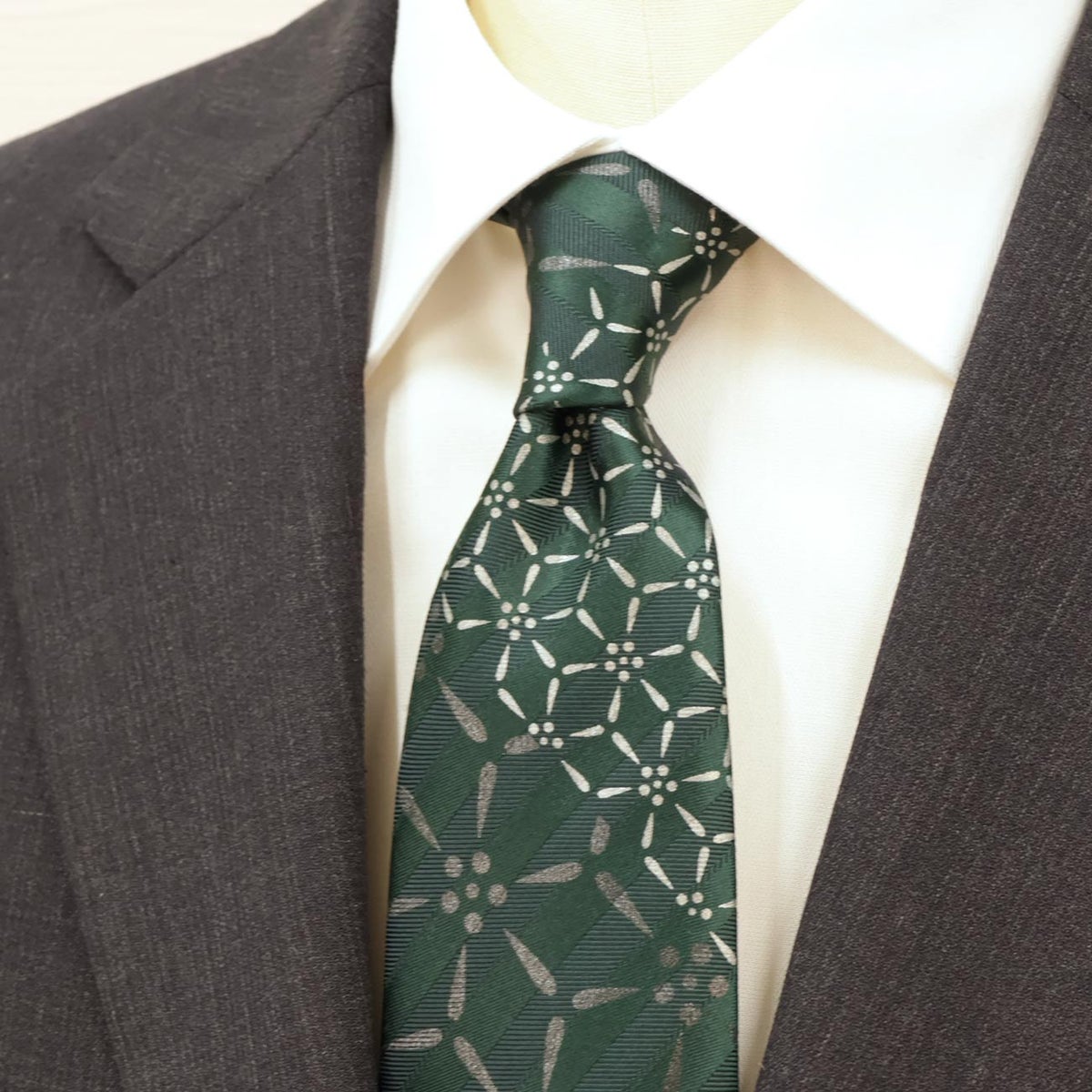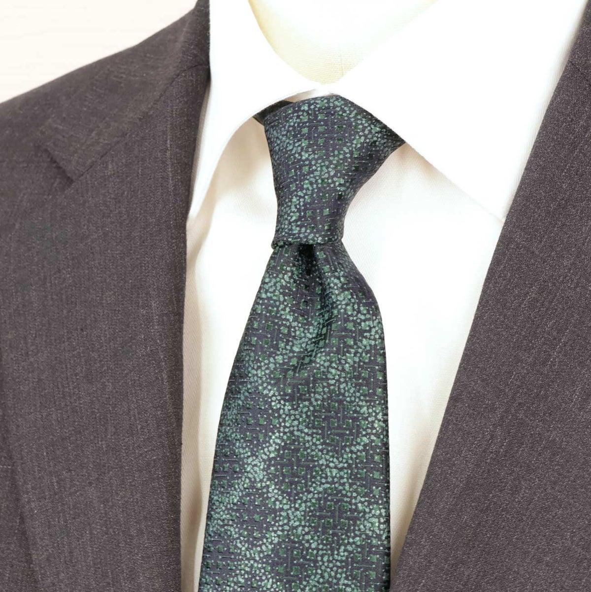 KINSHOKUネクタイ 京友禅ジャガードシャドー千鳥ジオメトリック・グリーン