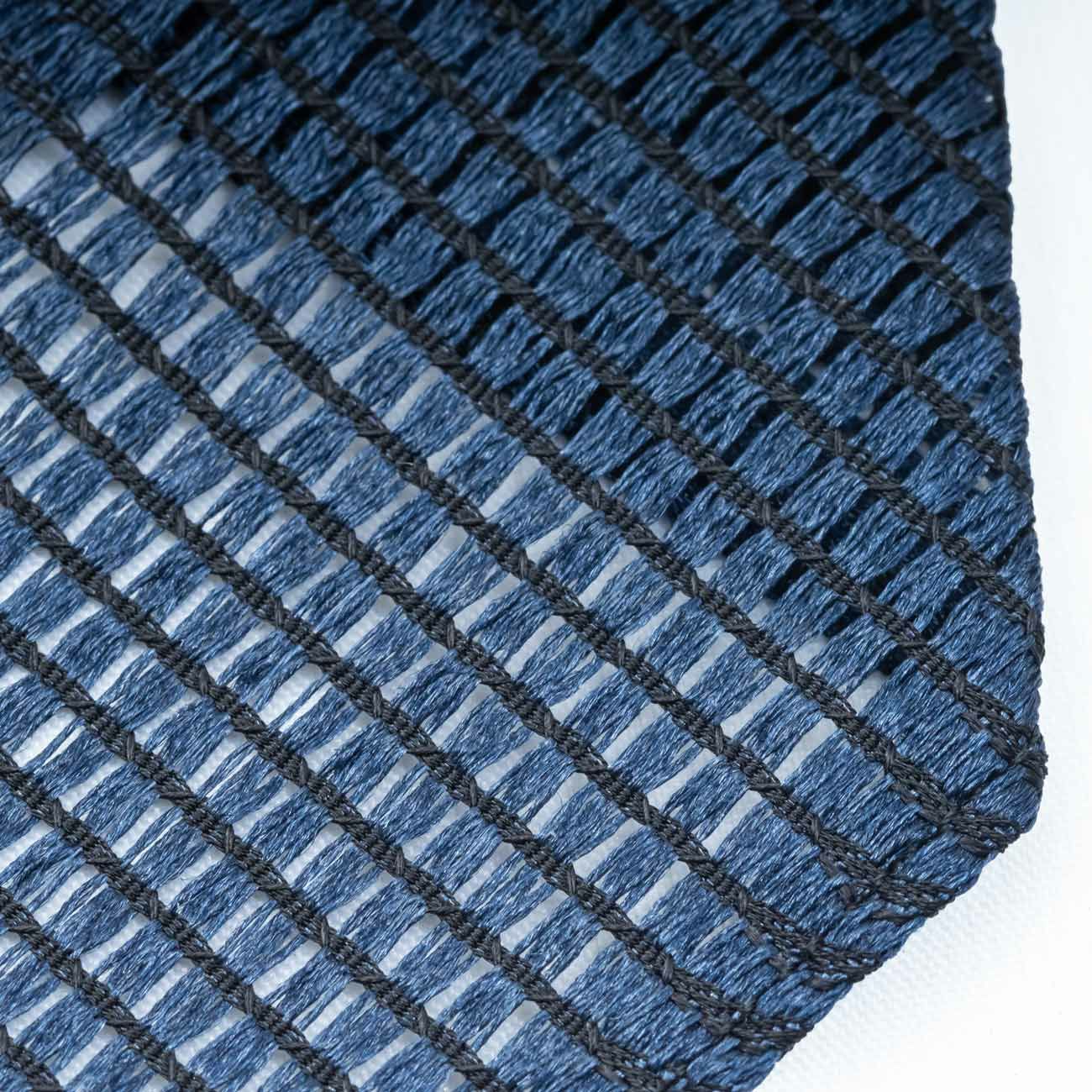 ネクタイ生地の白と青を際立たせるために、メッシュ状の黒い芯地を採用。