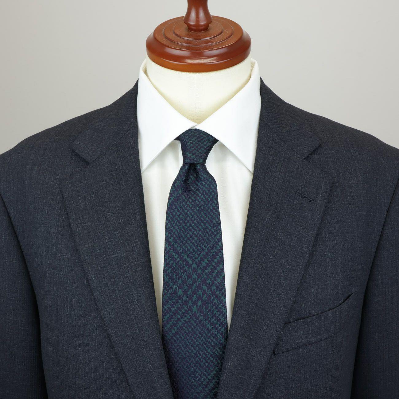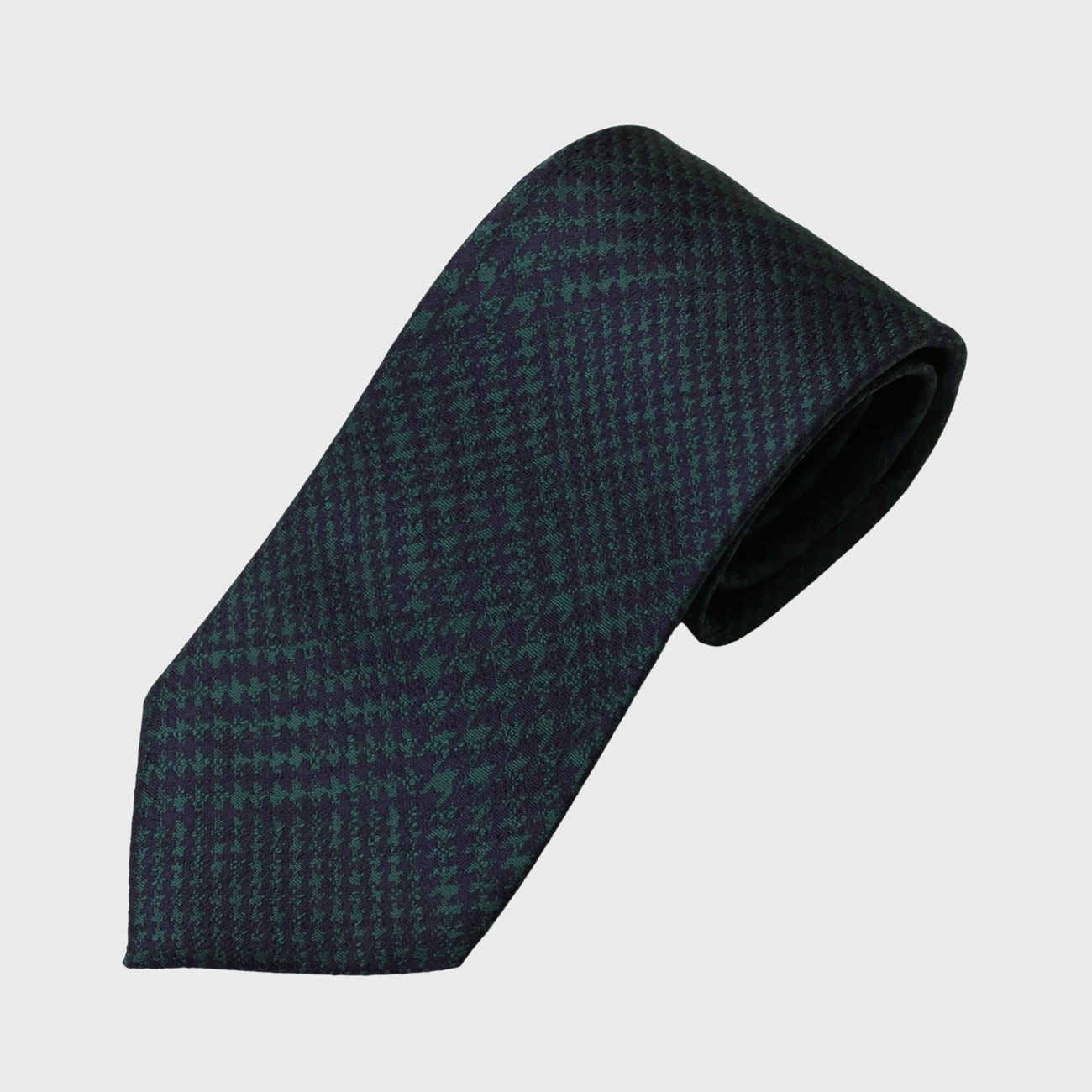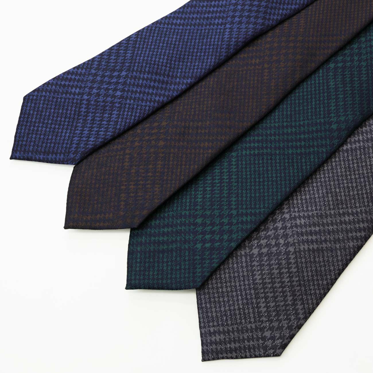 伝統的なグレンチェックに、光の加減で浮かび上がる控えめな艶をプラス。