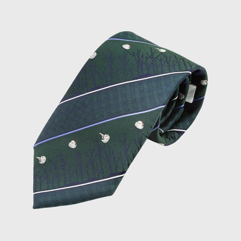 KINSHOKUネクタイ 白樺とシマエナガモチーフチェックストライプ・グリーン