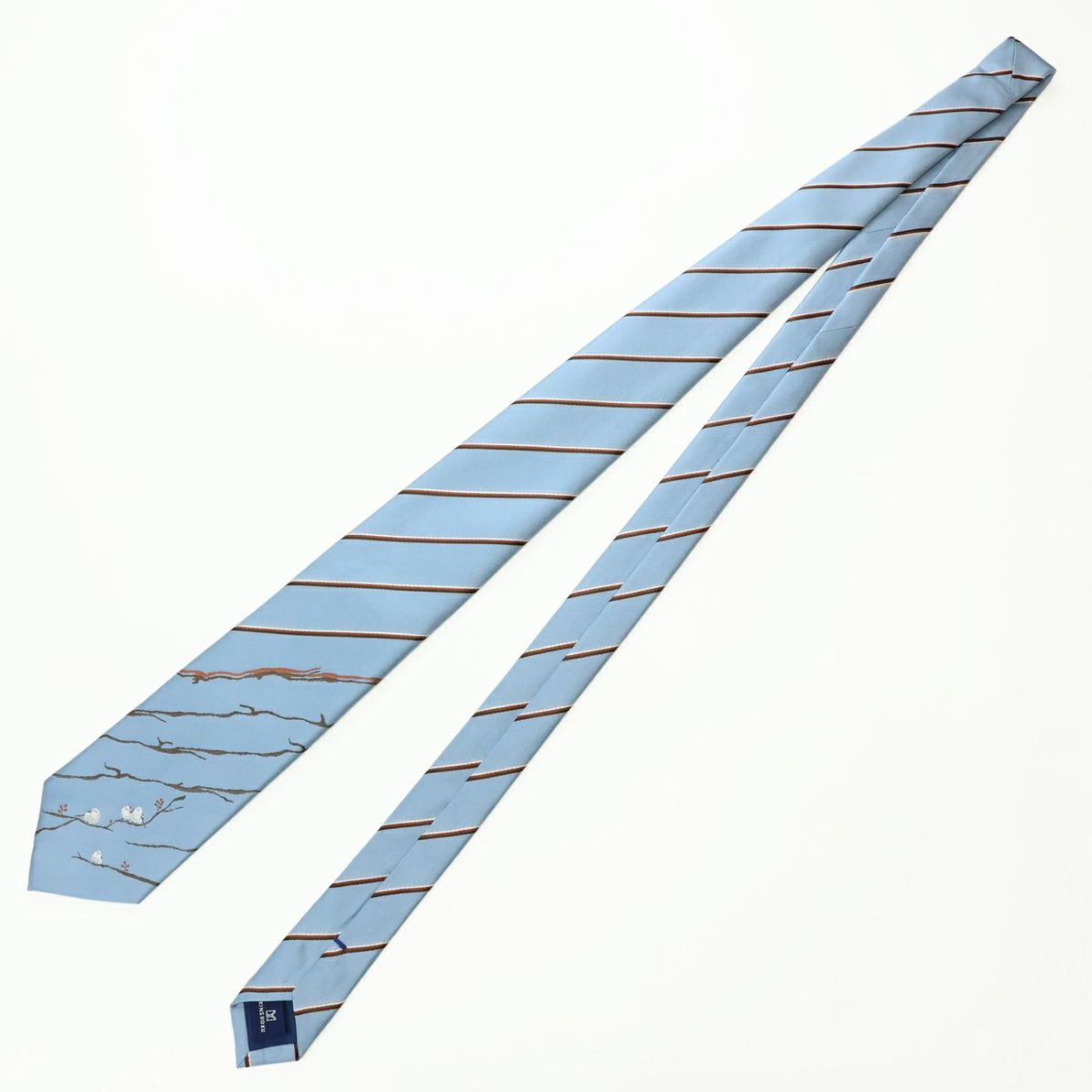 KINSHOKUネクタイ シマエナガモチーフストライプ・ライトブルー