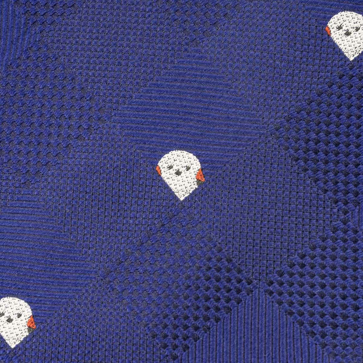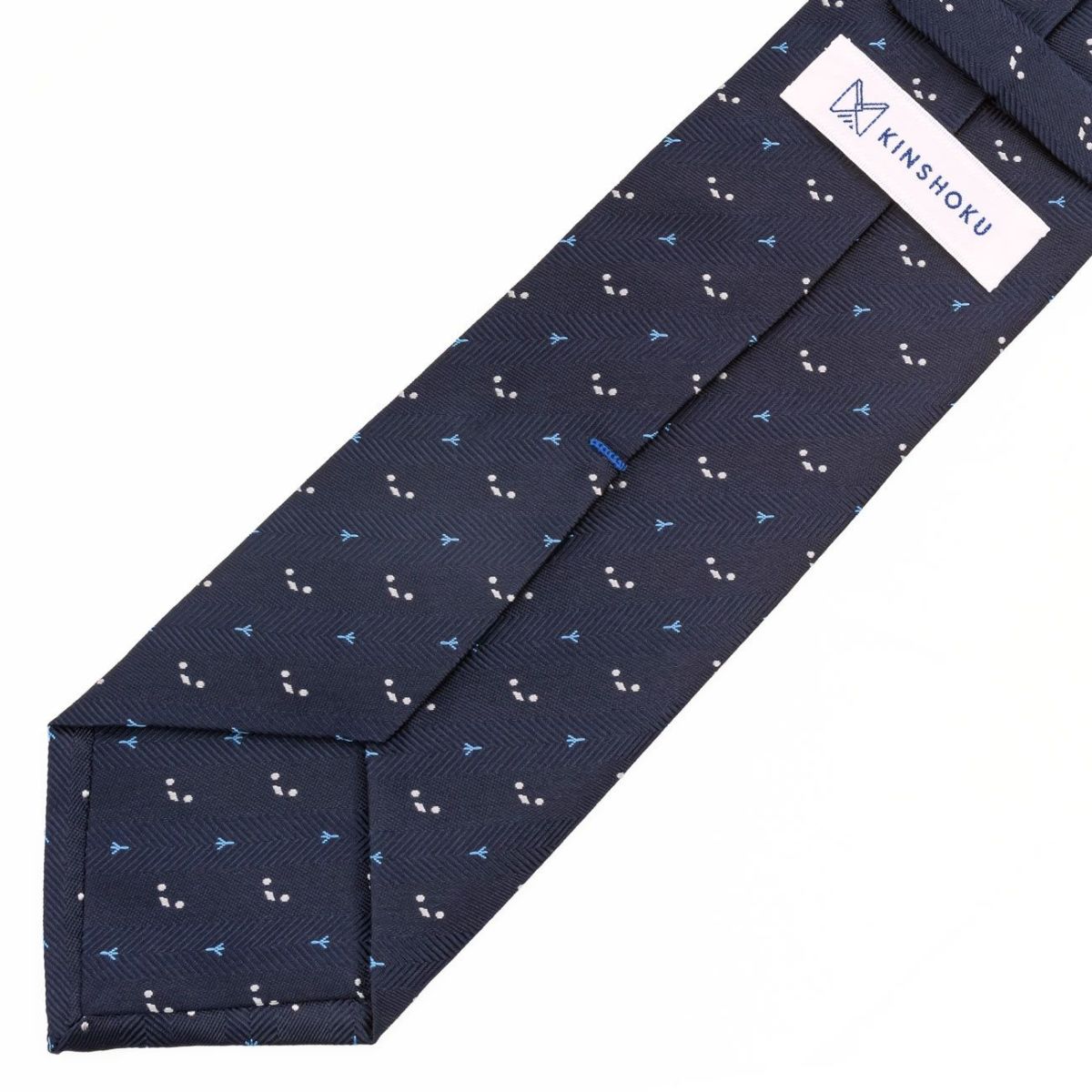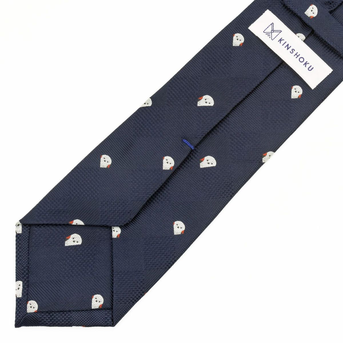 KINSHOKUネクタイ ほっこりシマエナガモチーフヘリンボン・ネイビー